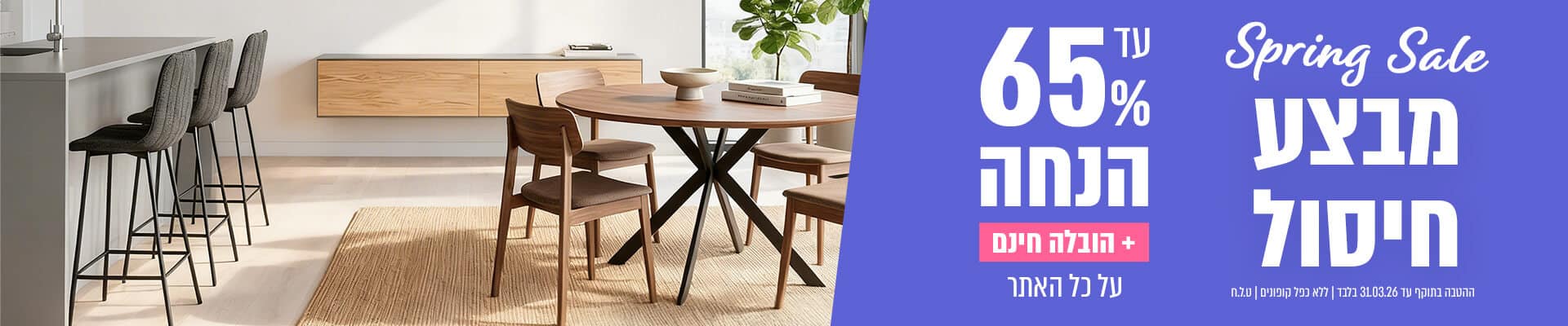 בואו לגלות את השילוב המושלם של סגנון ומחיר זול ברכישה בחנות הרהיטים המומלצת שלנו. עם מבחר רחב של רהיטים זולים, אנו מציעים תמורה ללא תחרות לשדרוג הבית שלכם. קנו רהיטים אונליין מבלי להתפשר על האיכות. תוכלו למצוא אצלינו רהיטים בזול לריהוט כל הבית ממגוון רחב של קטגוריות עיצוב. אז למה אתם מחכים? שדרגו עכשיו את את הבית שלכם בעזרת החנות רהיטים המומלצת שלנו ותיצרו לעצמכם חלל עם הרהיטים המעוצבים והיפים שלנו שלא תרצו לצאת ממנו.