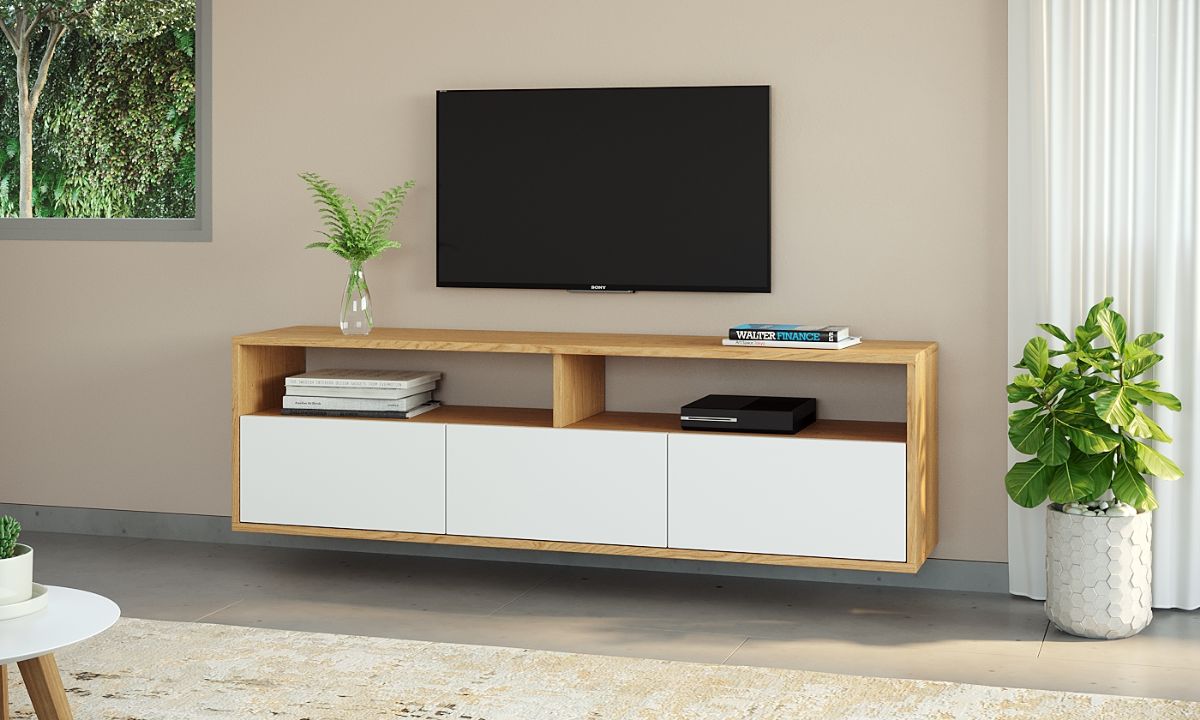 אם רוחב המסך הוא 150 ס"מ, מזנון ברוחב מינימלי של 180 ס"מ ייצור פרופורציה מאוזנת וימנע מראה צפוף.