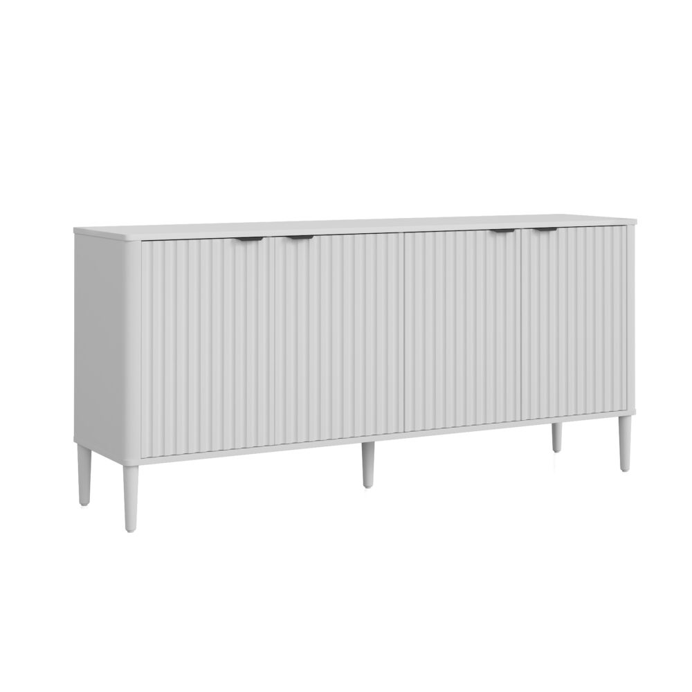 הקומודה מכילה ארבע דלתות MDF איכותי בצביעה בתנור שמונה תאי אחסון גדולים ורגלי עץ חזקות