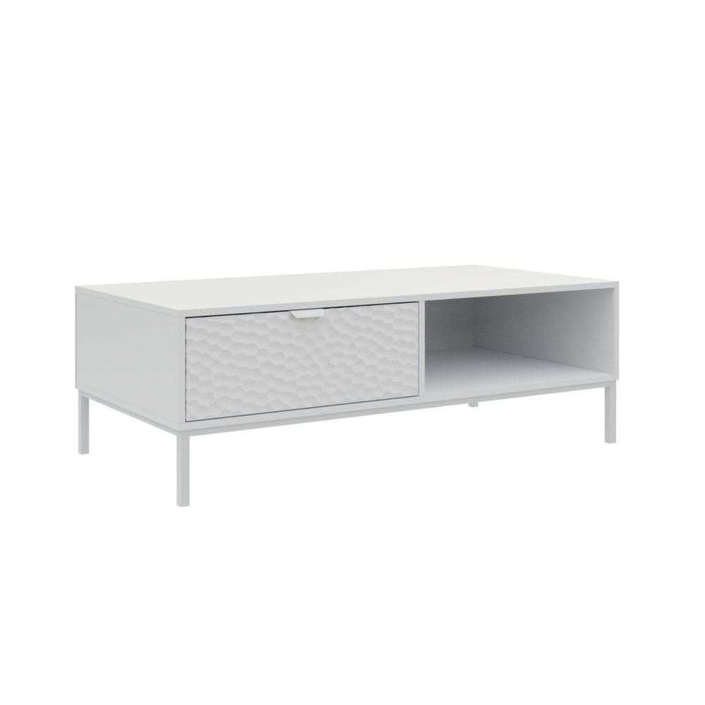 משטח רחב ומגירה בגימור תלת מימד יוקרתי ומושך המשדרג את מראה הסלון