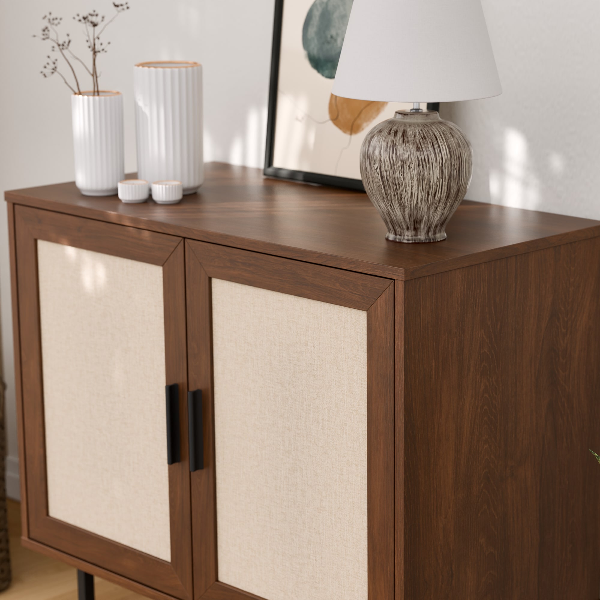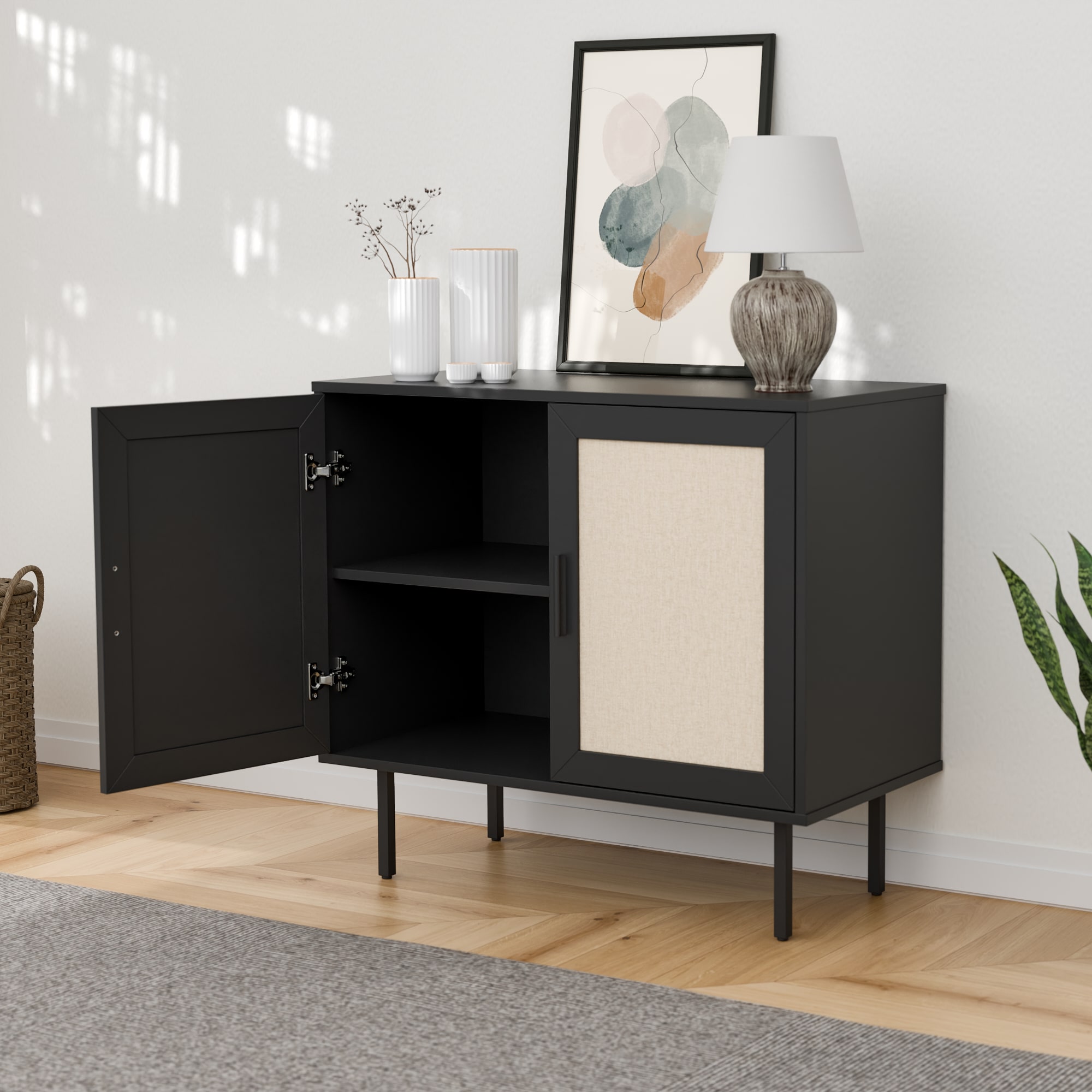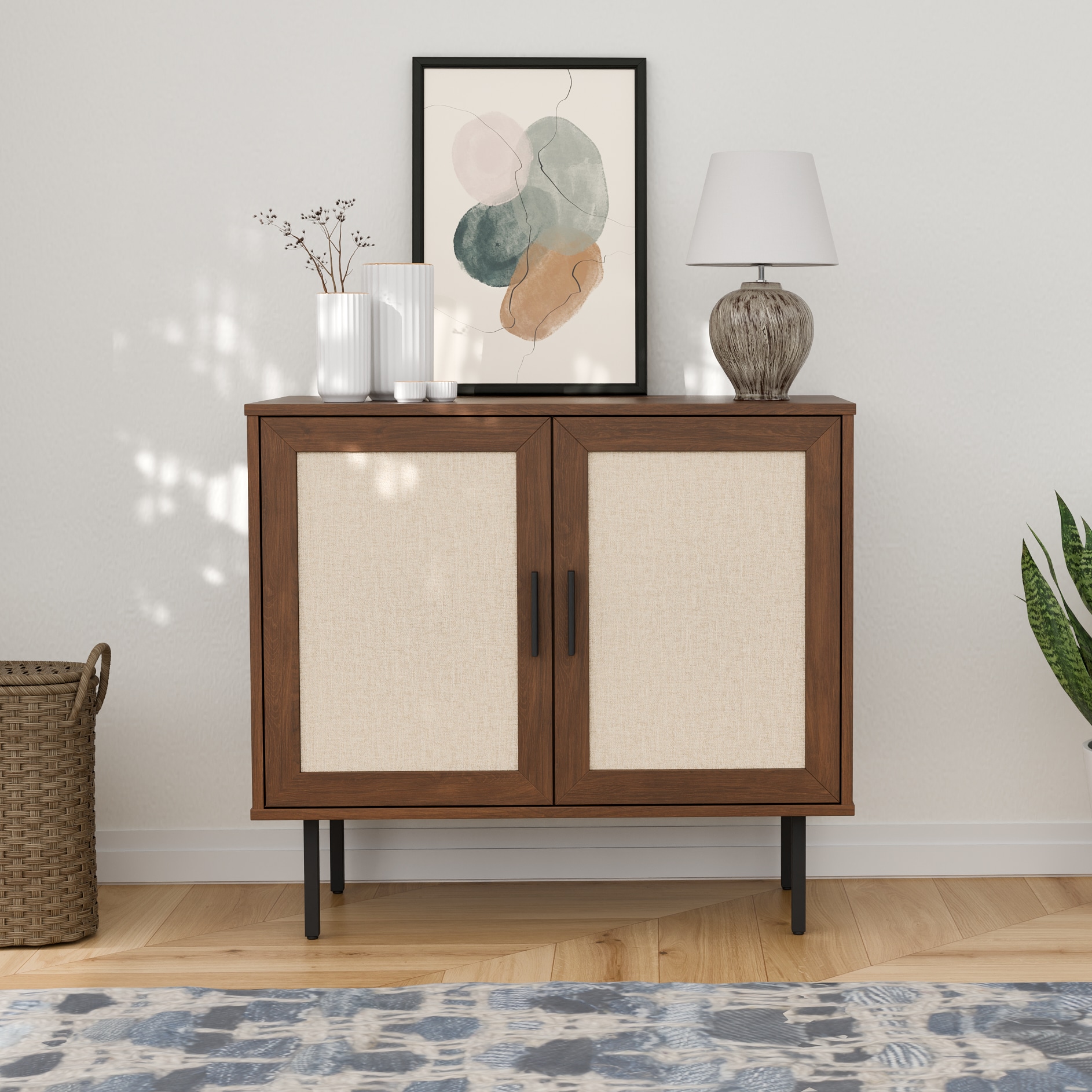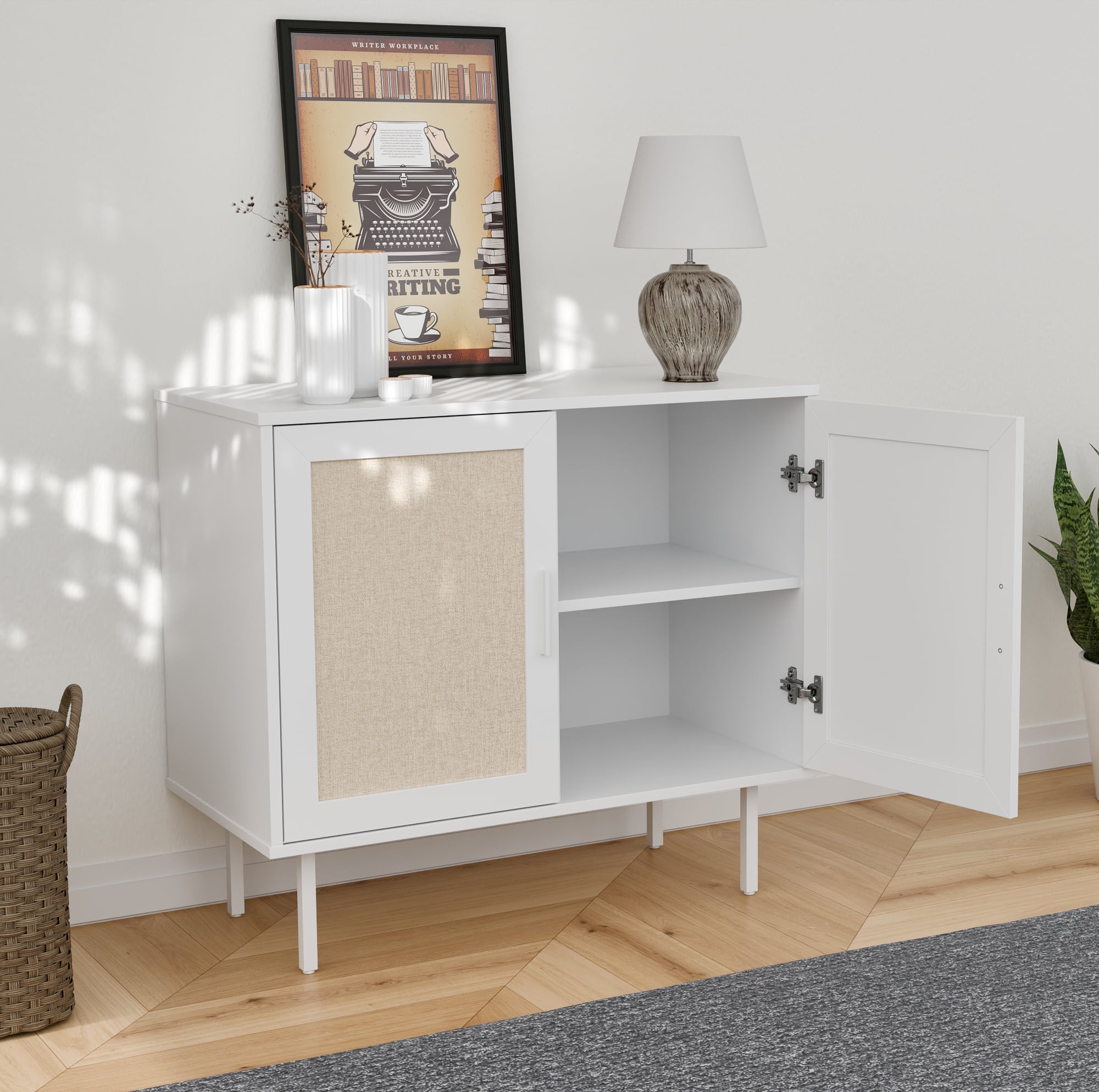 ארונית רב שימושית מודרנית במגוון צבעים עכשוויים בשילוב דלתות בסגנון ראטן