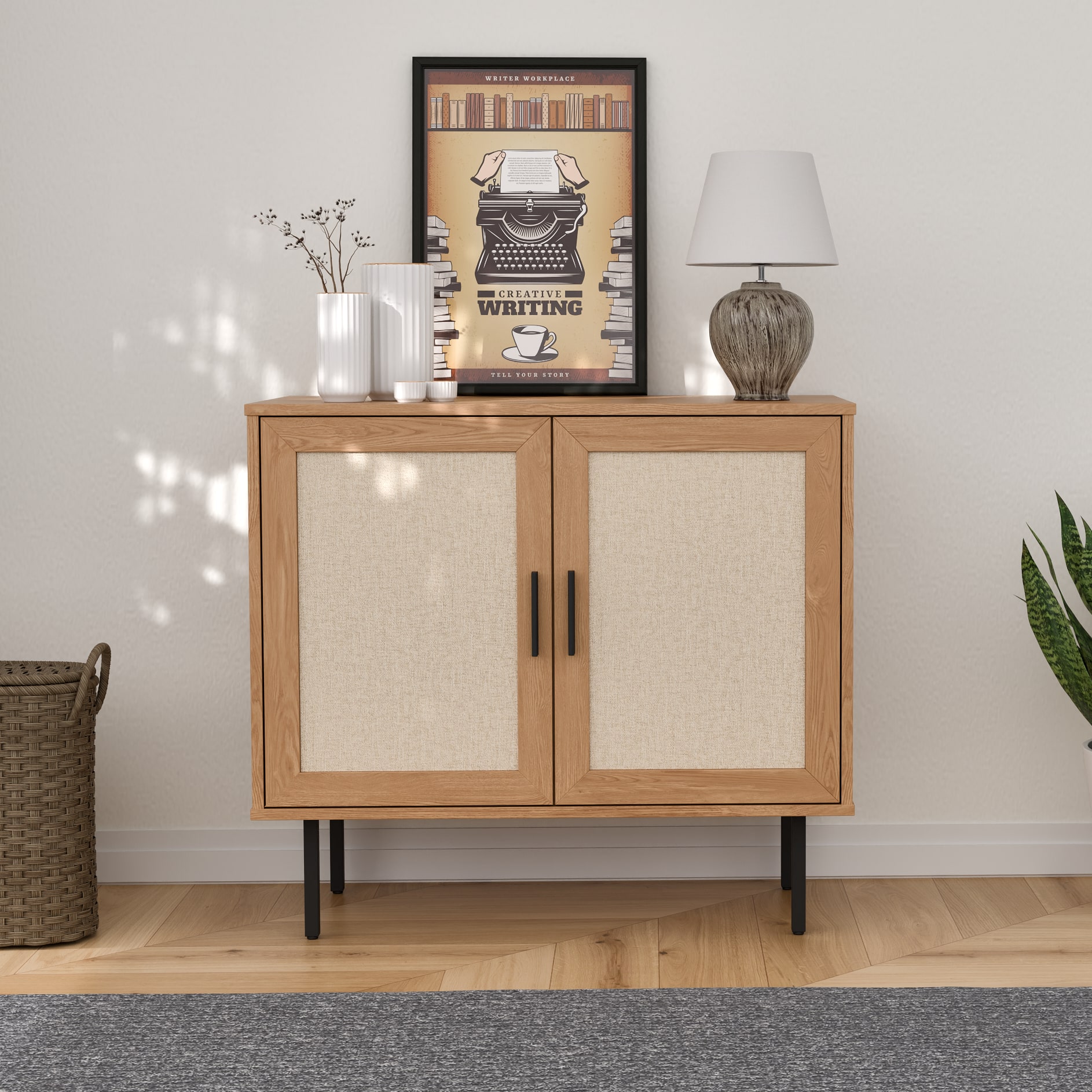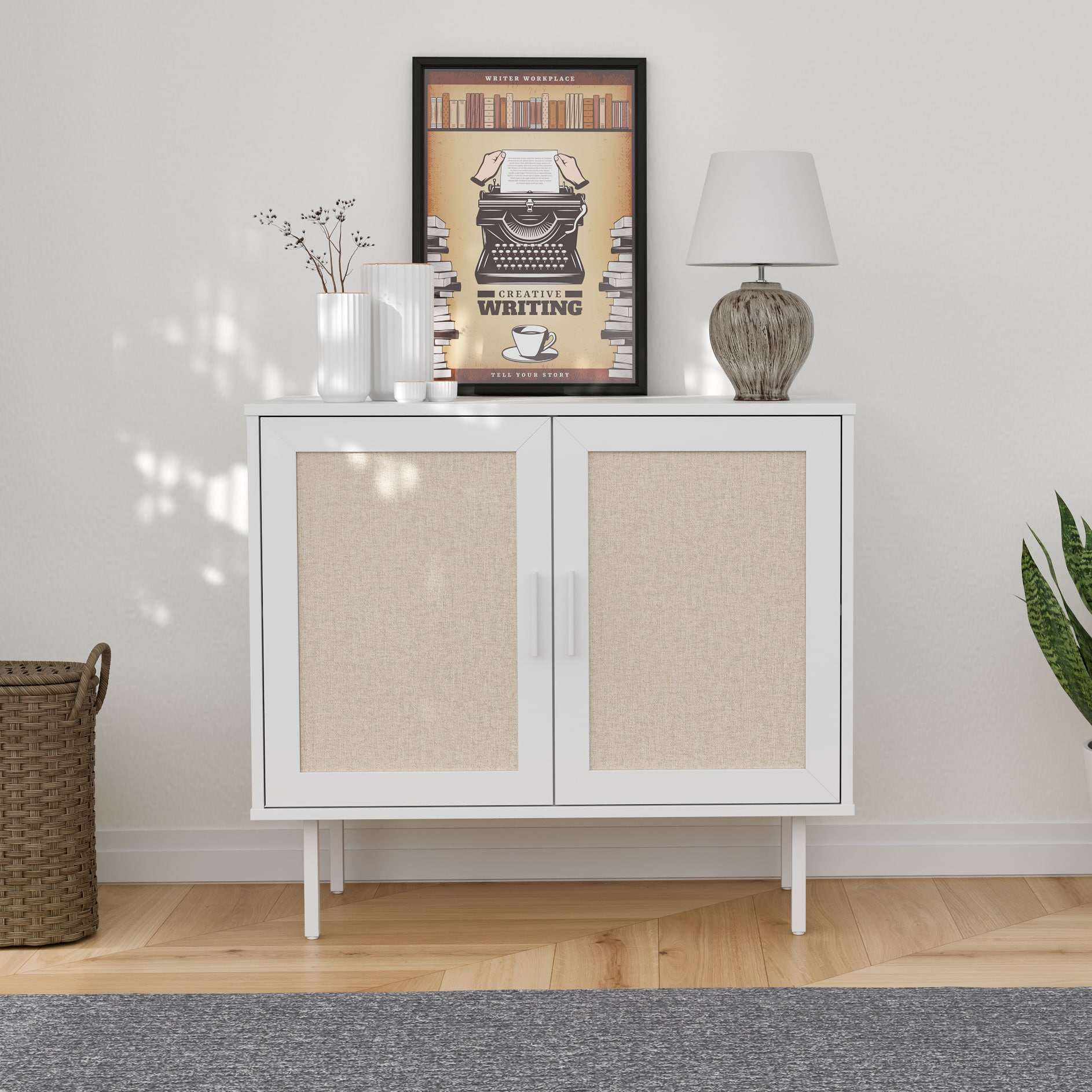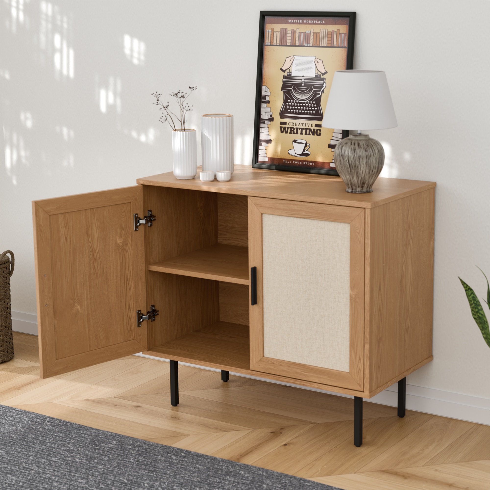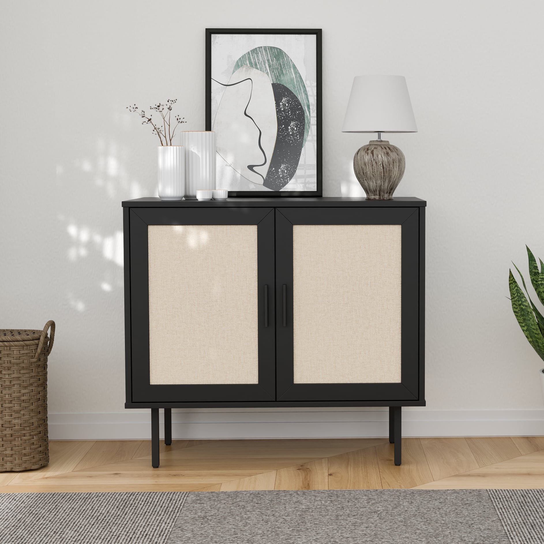 ארונית רב שימושית מודרנית במגוון צבעים עכשוויים בשילוב דלתות בסגנון ראטן