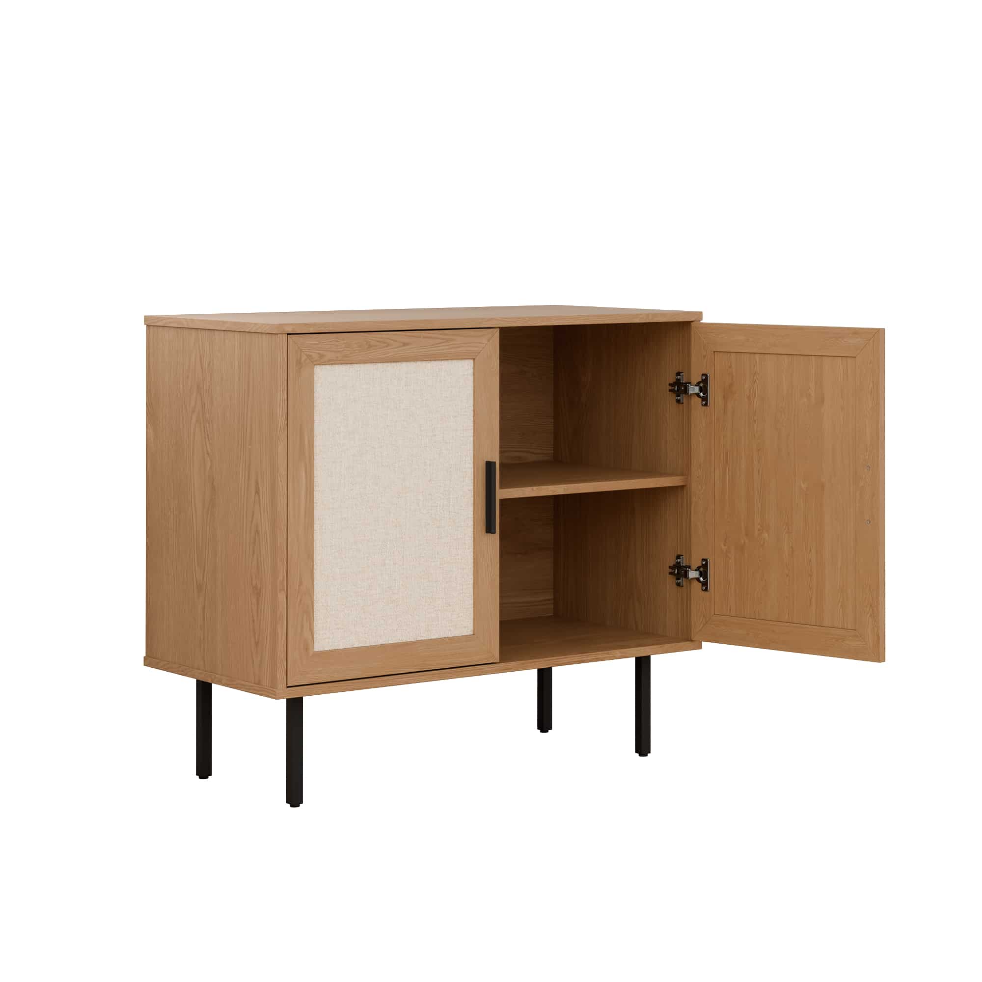 הארונית מגיעה עם שתי מדפים בעלי חלל אחסון גדול ושתי דלתות מעוצבות בסגנון ראטן