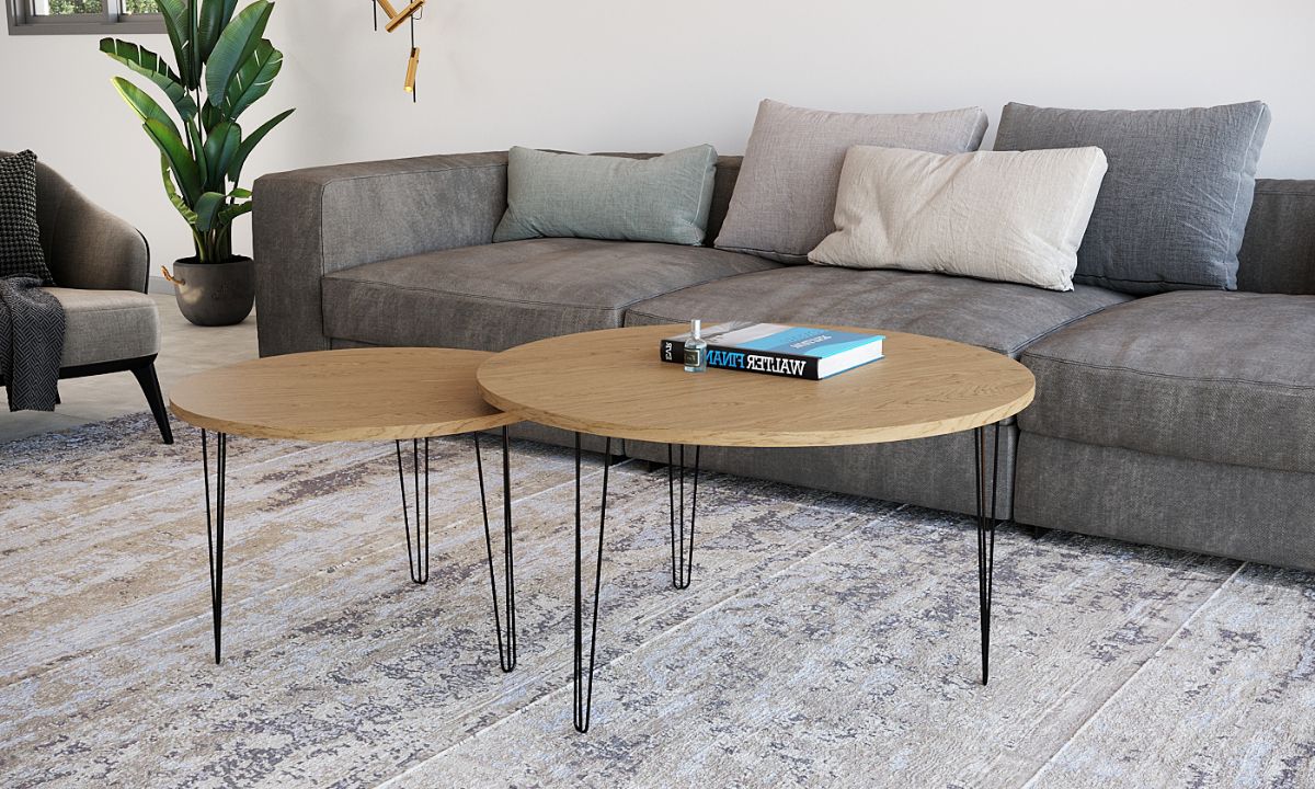 זוג שולחנות סלון עגולים מודרניים דגם אוסטין במגוון צבעים לבחירה