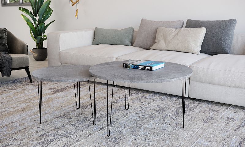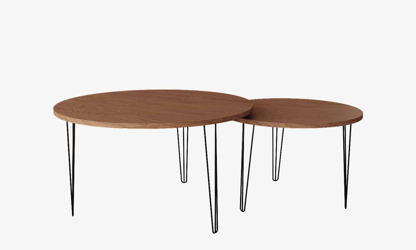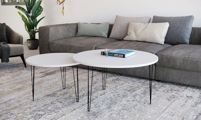 זוג שולחנות סלון יוקרתיים בעל פלטת mdf בעובי 18 מ"מ ורגלי מתכת חזקות ויציבות
