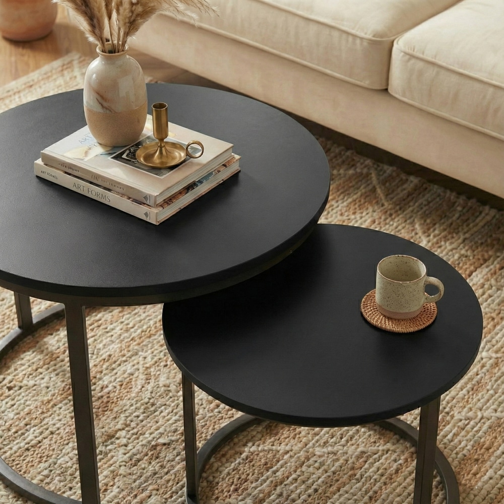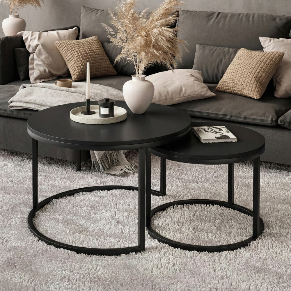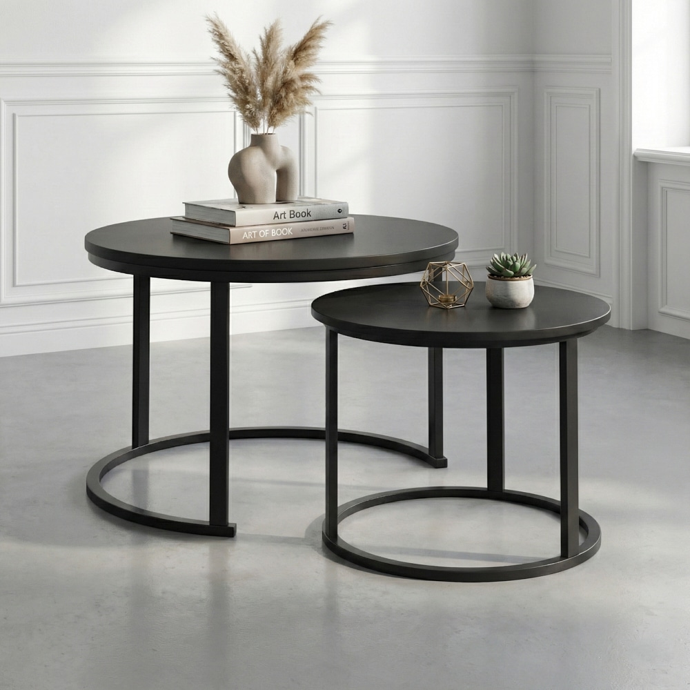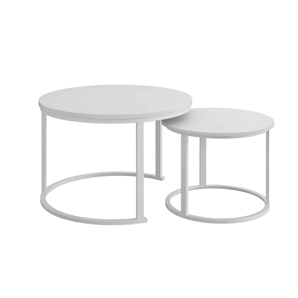 סט שולחנות עגולים מדורגים בעיצוב מינימליסטי ועדכני שמשתלב בקלות בכל סלון.השילוב בין קווים נקיים לצבע אחיד יוצר מראה רגוע מודרני ומדוייק.