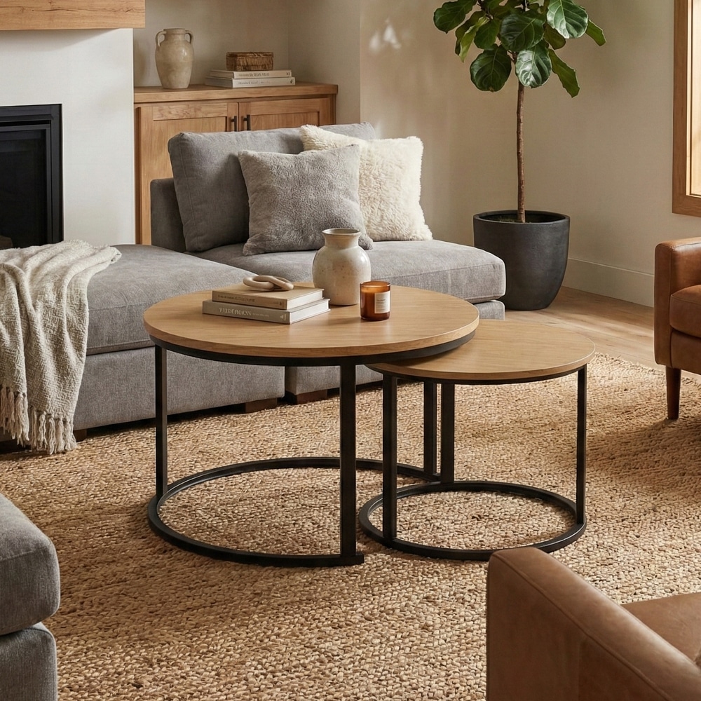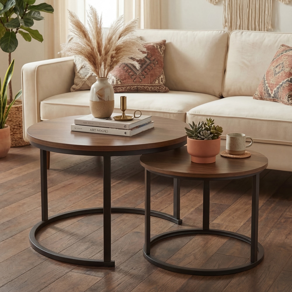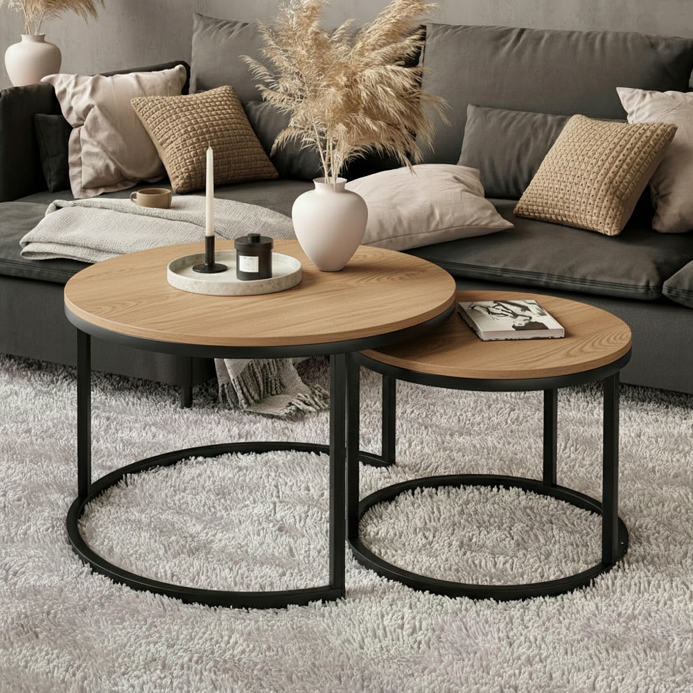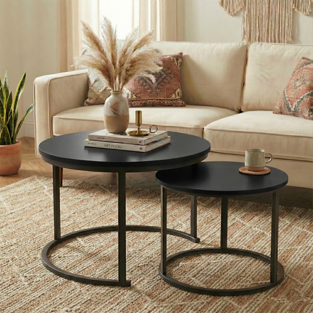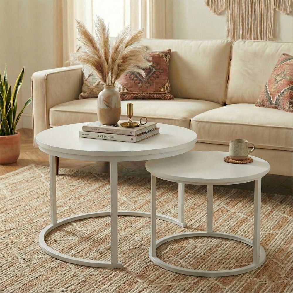 סט שולחנות עגולים מדורגים בעיצוב מינימליסטי ועדכני שמשתלב בקלות בכל סלון.השילוב בין קווים נקיים לצבע אחיד יוצר מראה רגוע מודרני ומדוייק.
