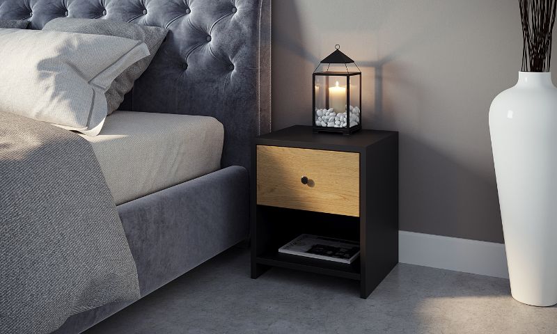 זוג שידות לילה מעוצבות דגם אוסי בעלות מגירה ומדף אחסון גדול