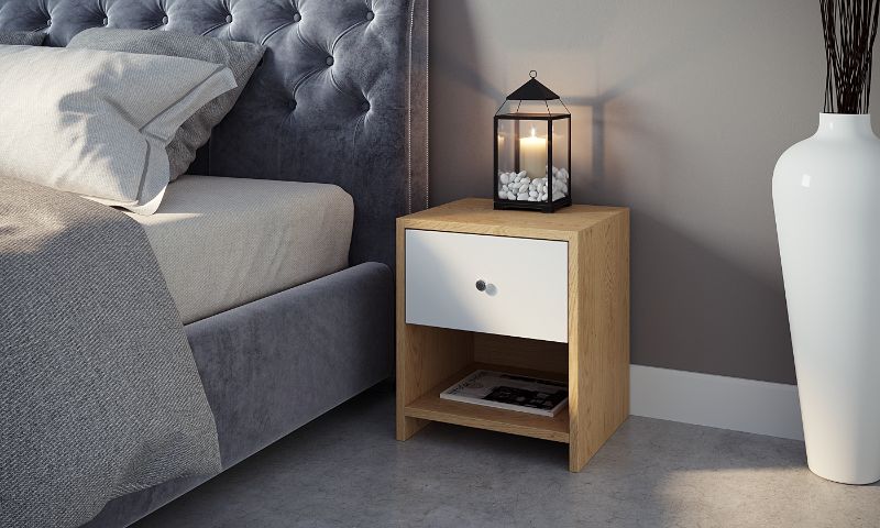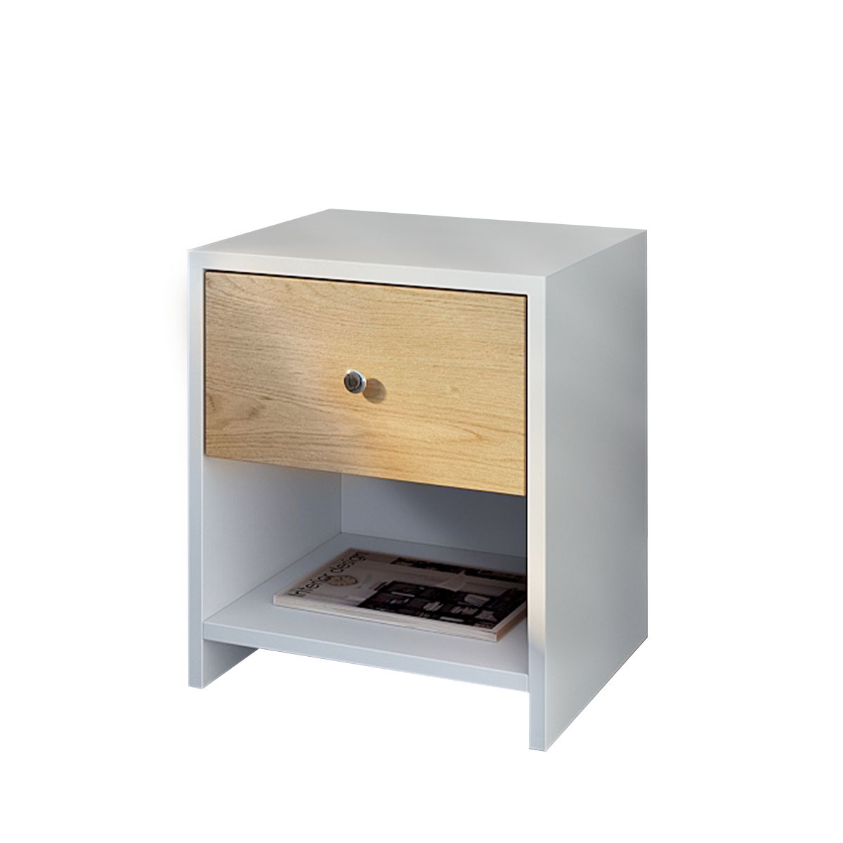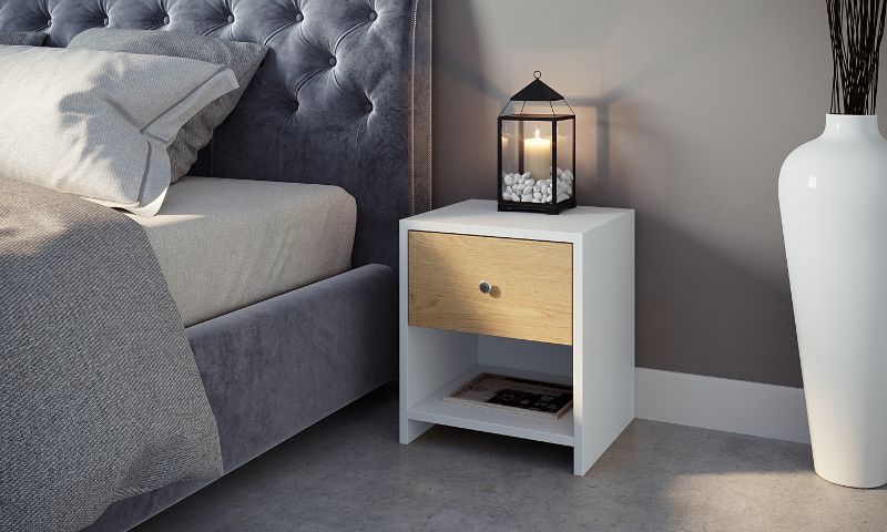 אלון בשילוב מגירה לבנההשידה עשויה משבבי עץ דחוסים וציפוי בטקסטורה יוקרתית מגירה בעלת מסילה נוחה וידית מעוצבת