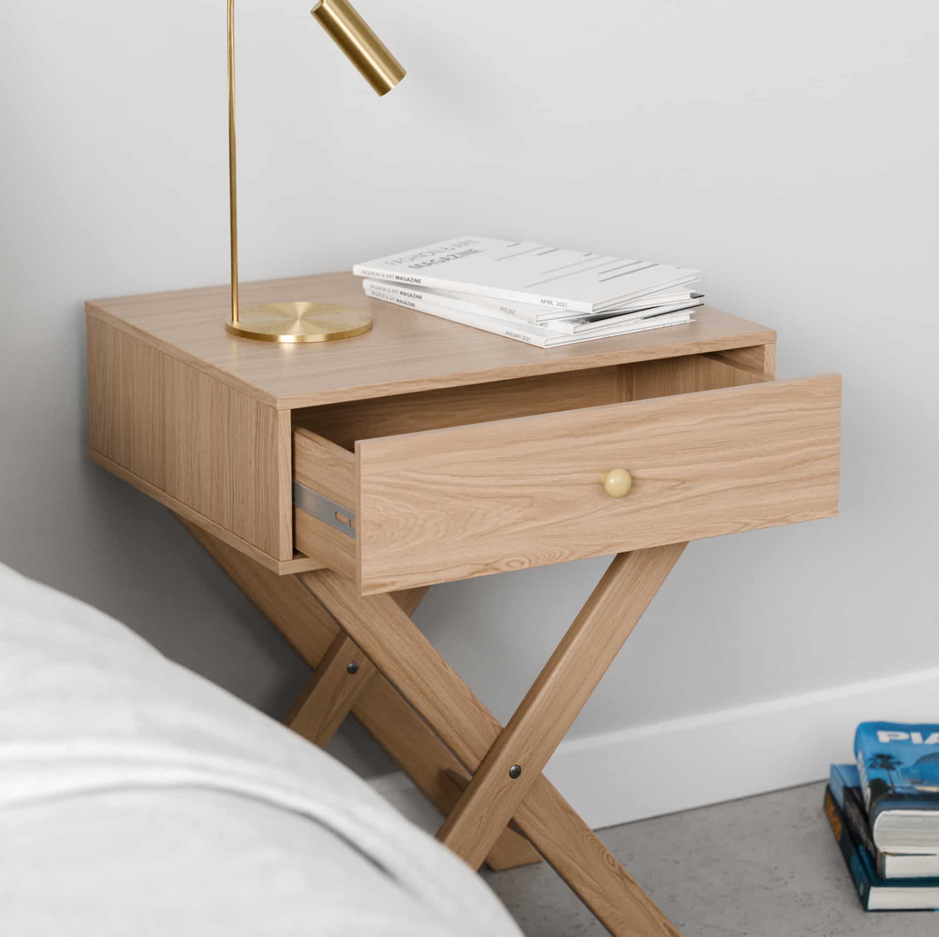 זוג שידות לילה מודרניות עם מגירה נשלפת לאחסון במראה מודרני ומושך דגם ואץ