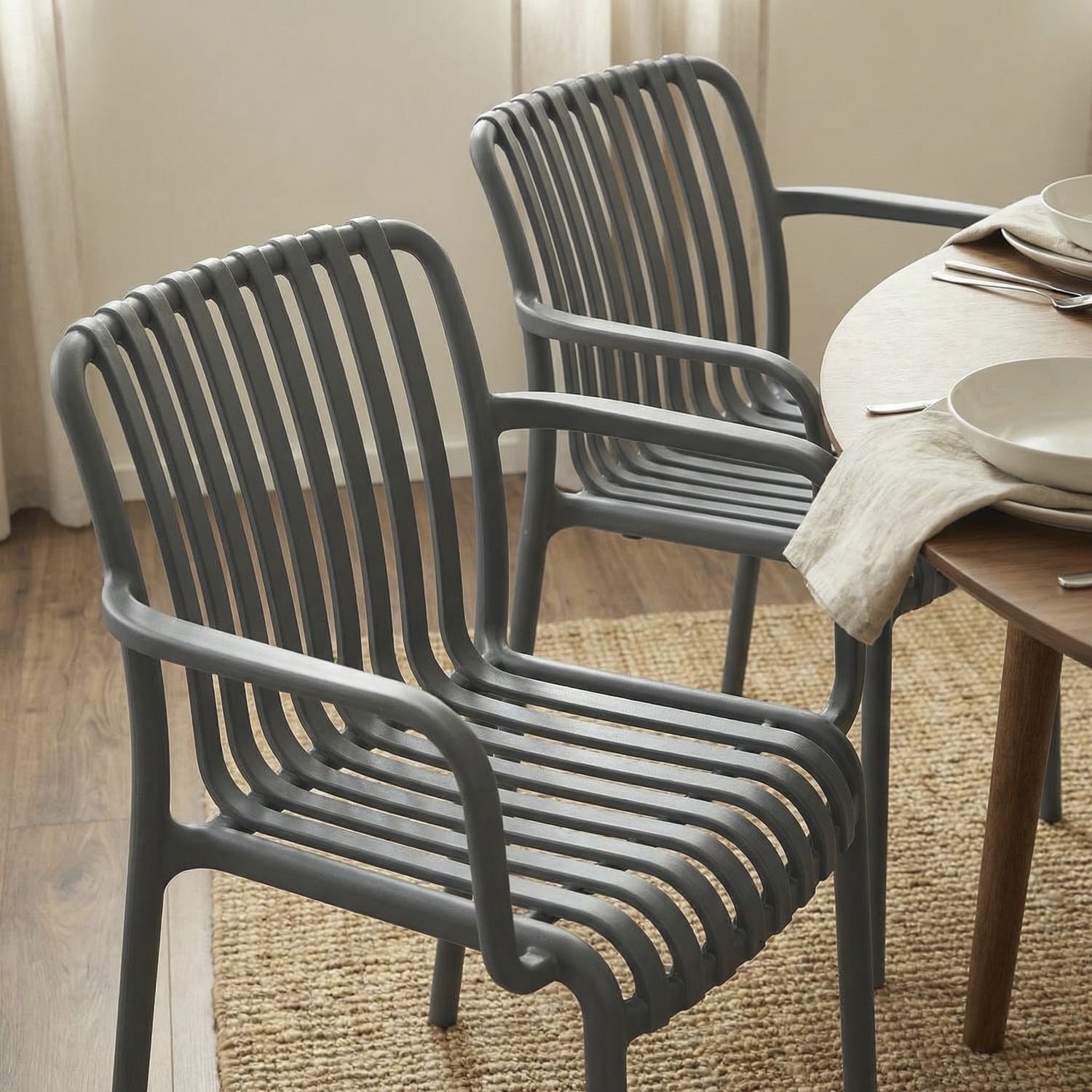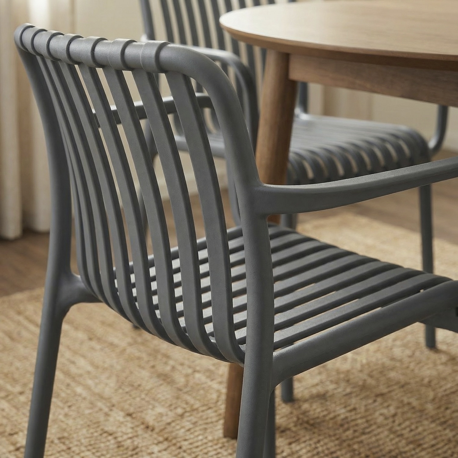 כיסא בעיצוב עכשווי ונקי עם קווים זורמים נוח לישיבה יומיומית ומתאים לשימוש פנים וחוץ