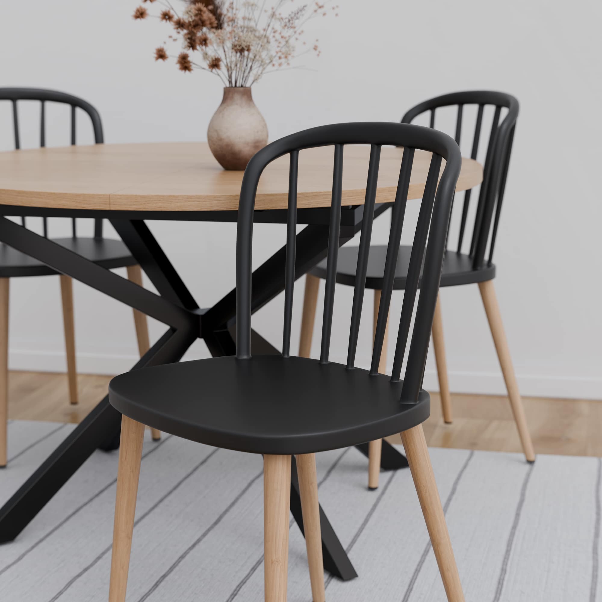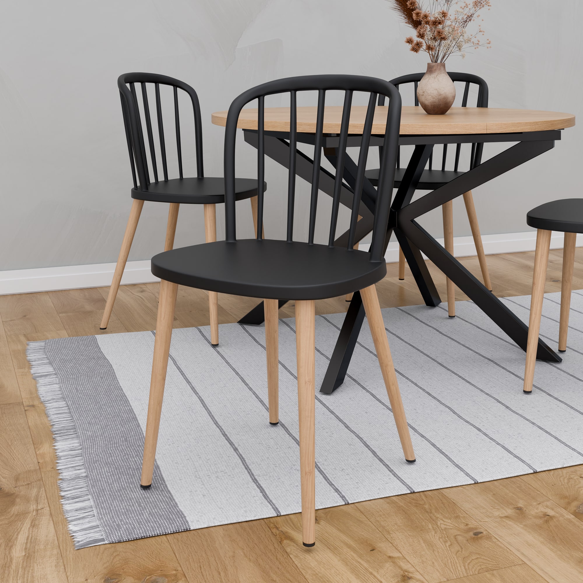 רגלי מתכת בציפוי דמוי עץ יוקרתי ומושב פלסטיק איכותי