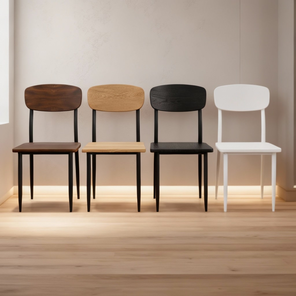 כיסא פינת אוכל חזק המעניק תמיכה מלאה לגב בעל מושב שטוח ויציב ורגלי מתכת חזקות