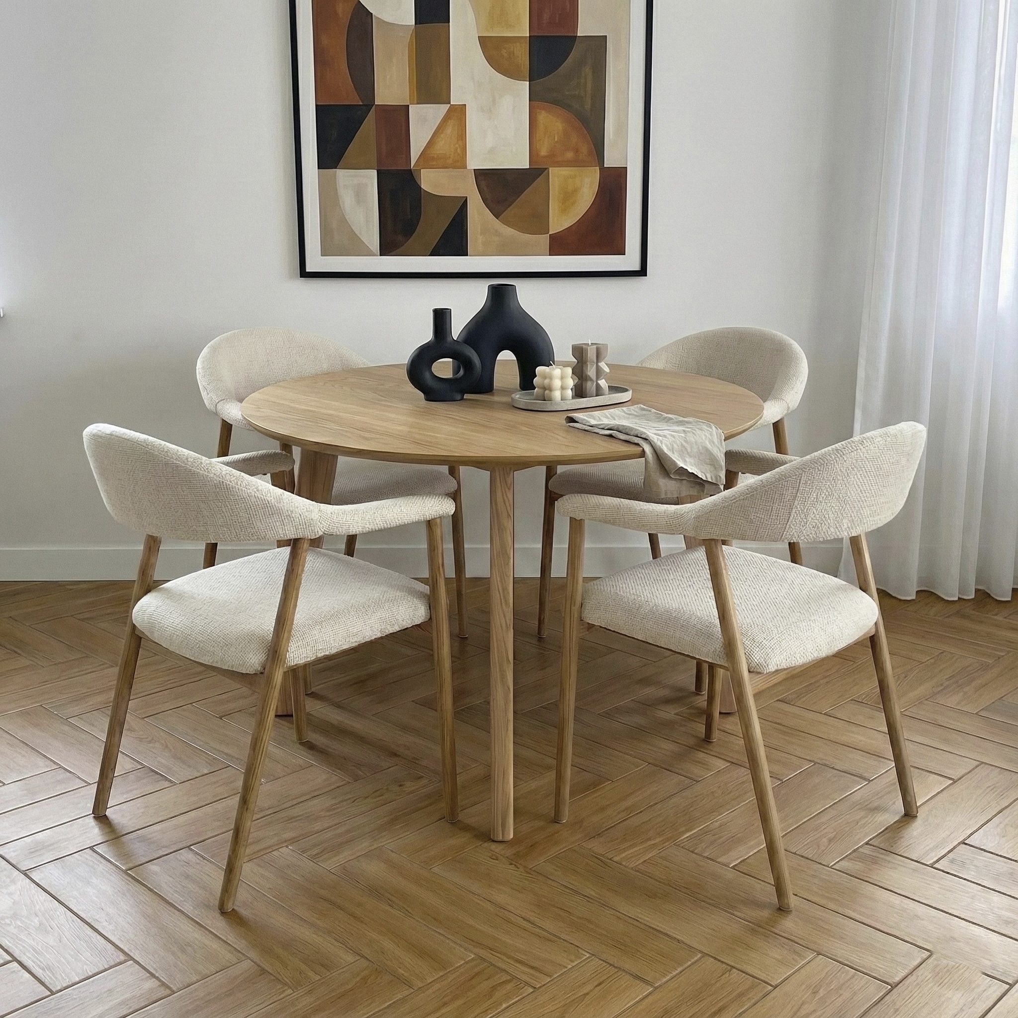 כיסא אוכל מוקפד שמשלב נוחות עם עיצוב מודרני ויוקרתי. המושב המרופד והמשענת המעוגלת מעניקים תחושה ישיבה מפנקת בעוד הקווים הנקיים יוצרים מראה אלגנטי ועל זמני