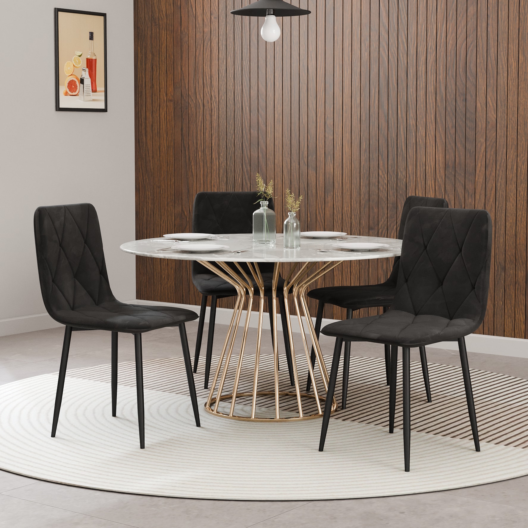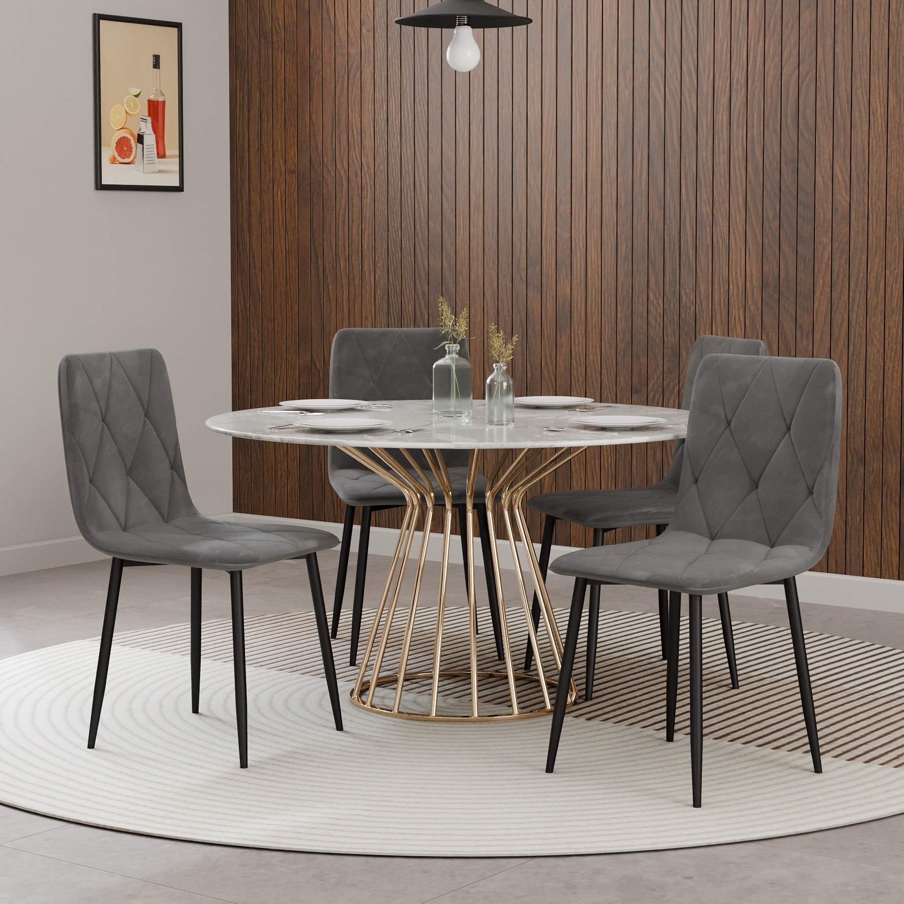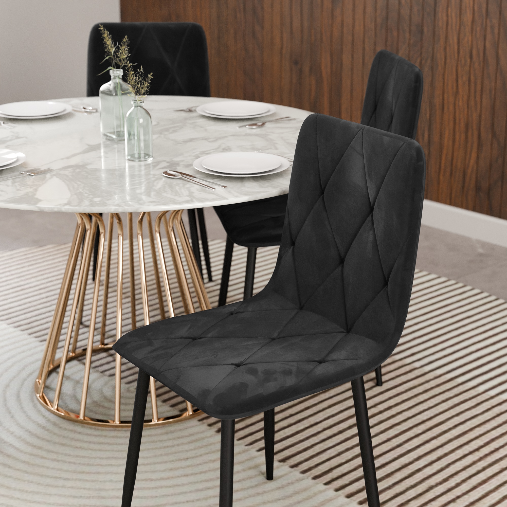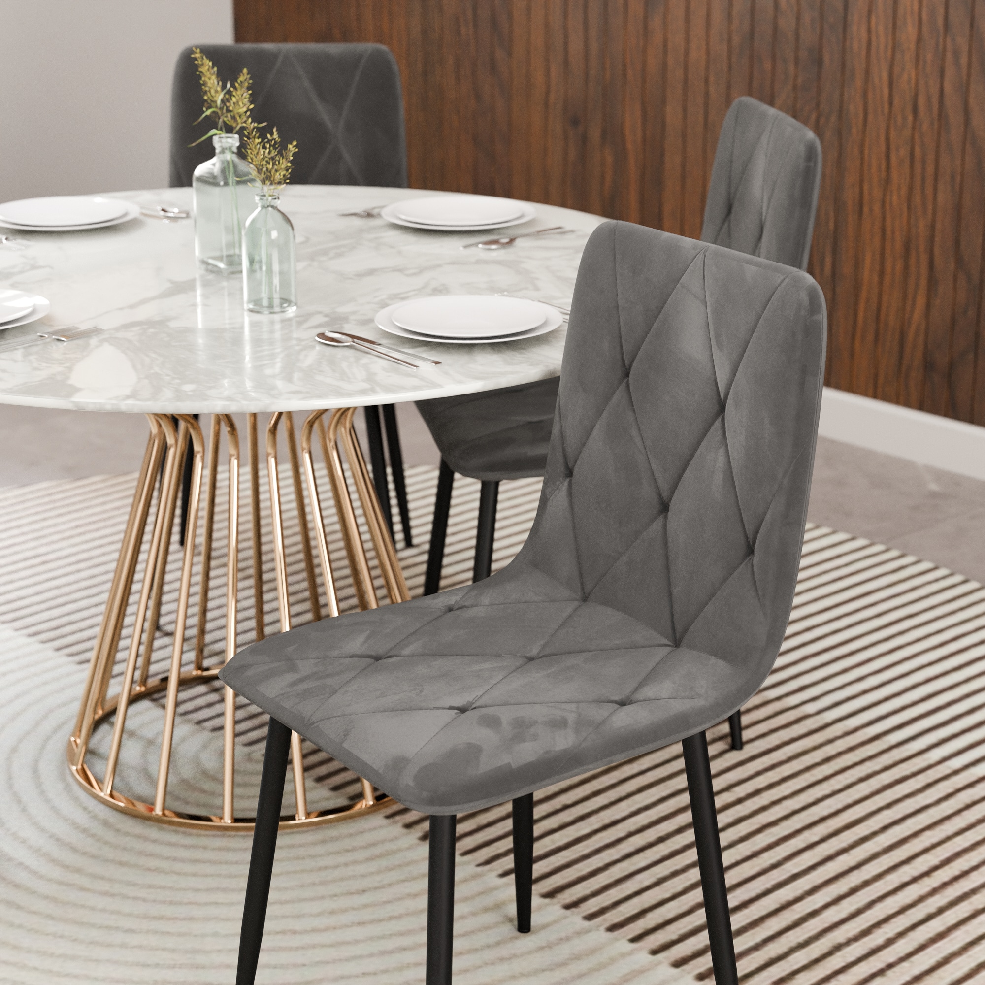כיסא ברגמו מגיע בריפוד קטיפתי יוקרתי בעיצוב מעוינים ורגלי מתכת חזקות לישיבה יציבה
