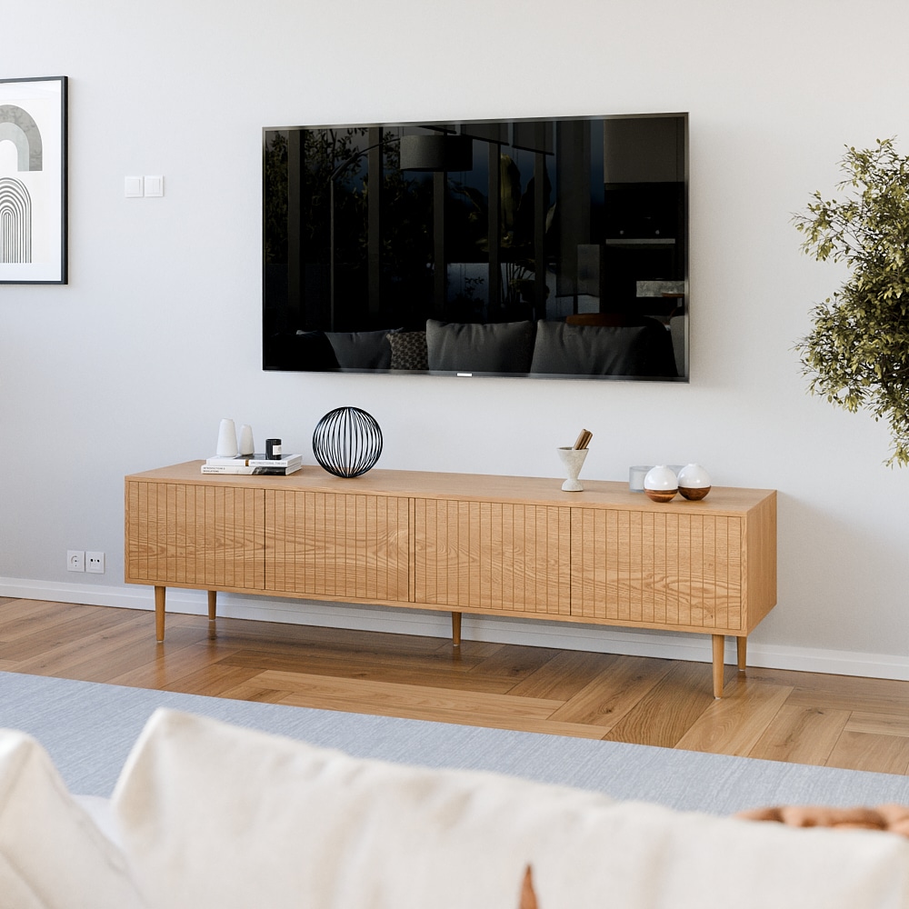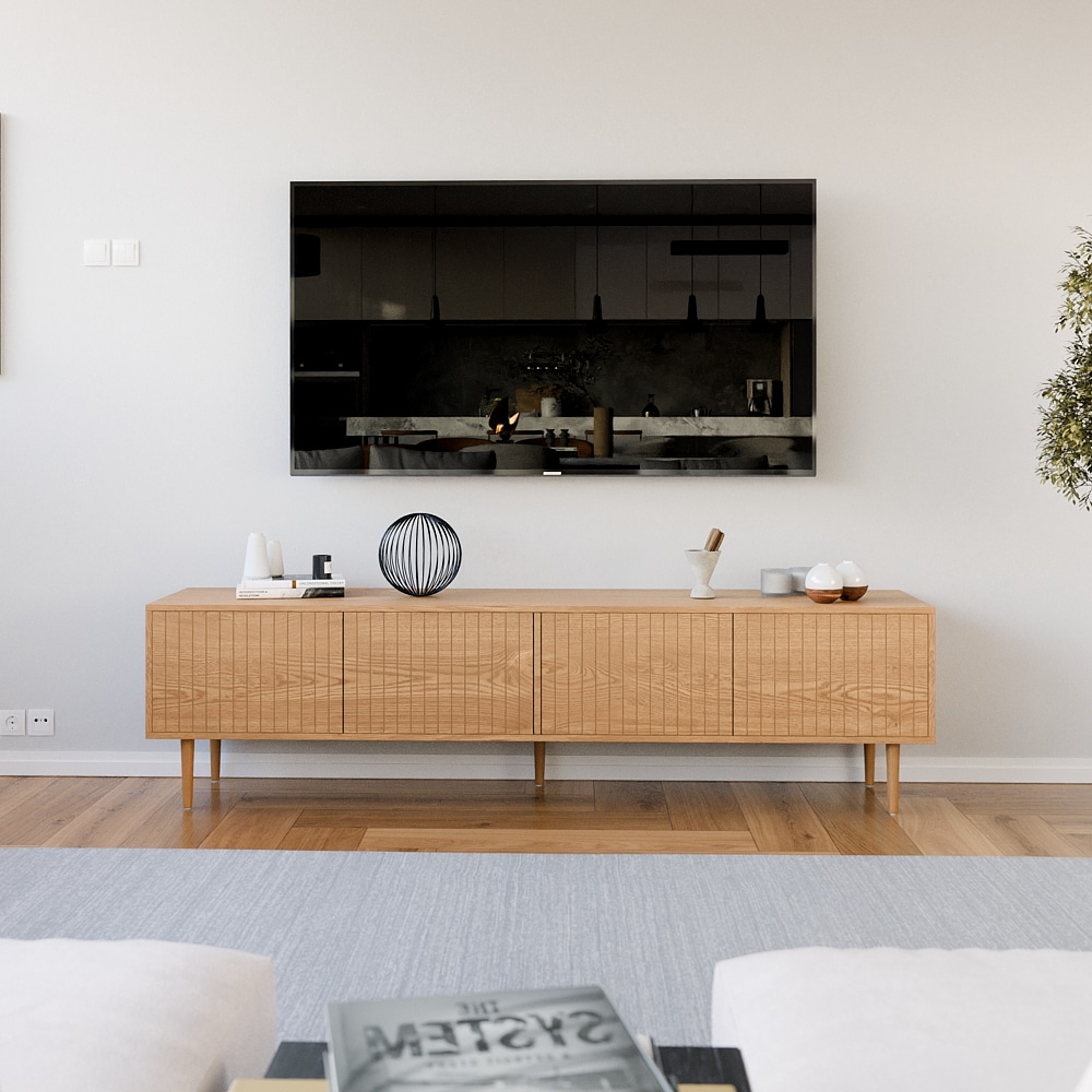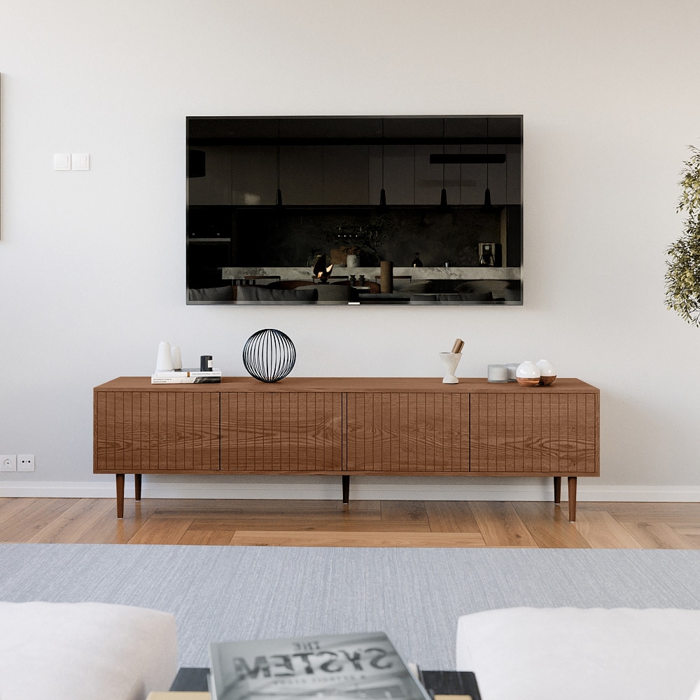 עיצוב מרהיב-קווים נקיים וגימורים מדוייקים ארבעה תאי אחסון גדולים הסגורים בדלתות למניעת כניסת אבק ולכלוך וחמש רגלי עץ חזקות ליציבות מרבית