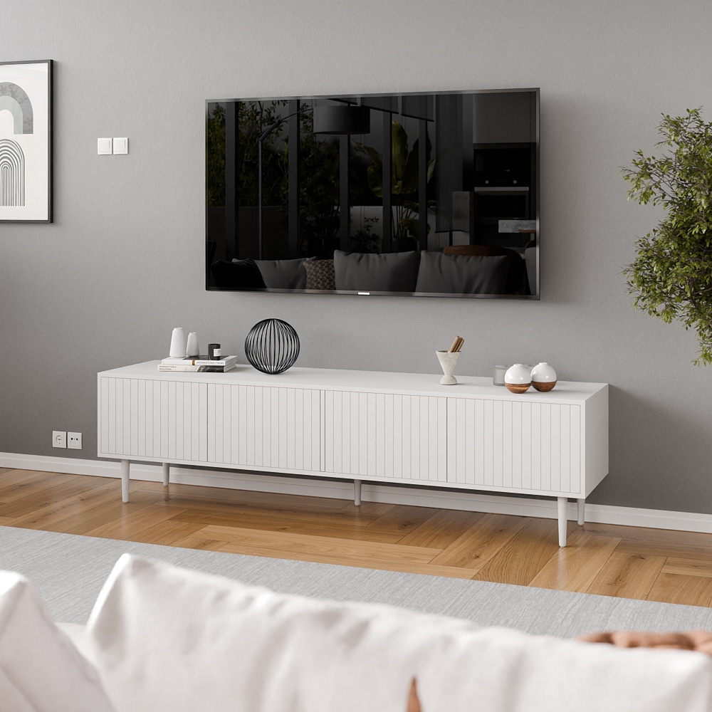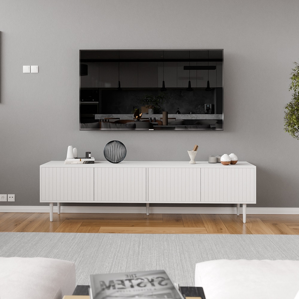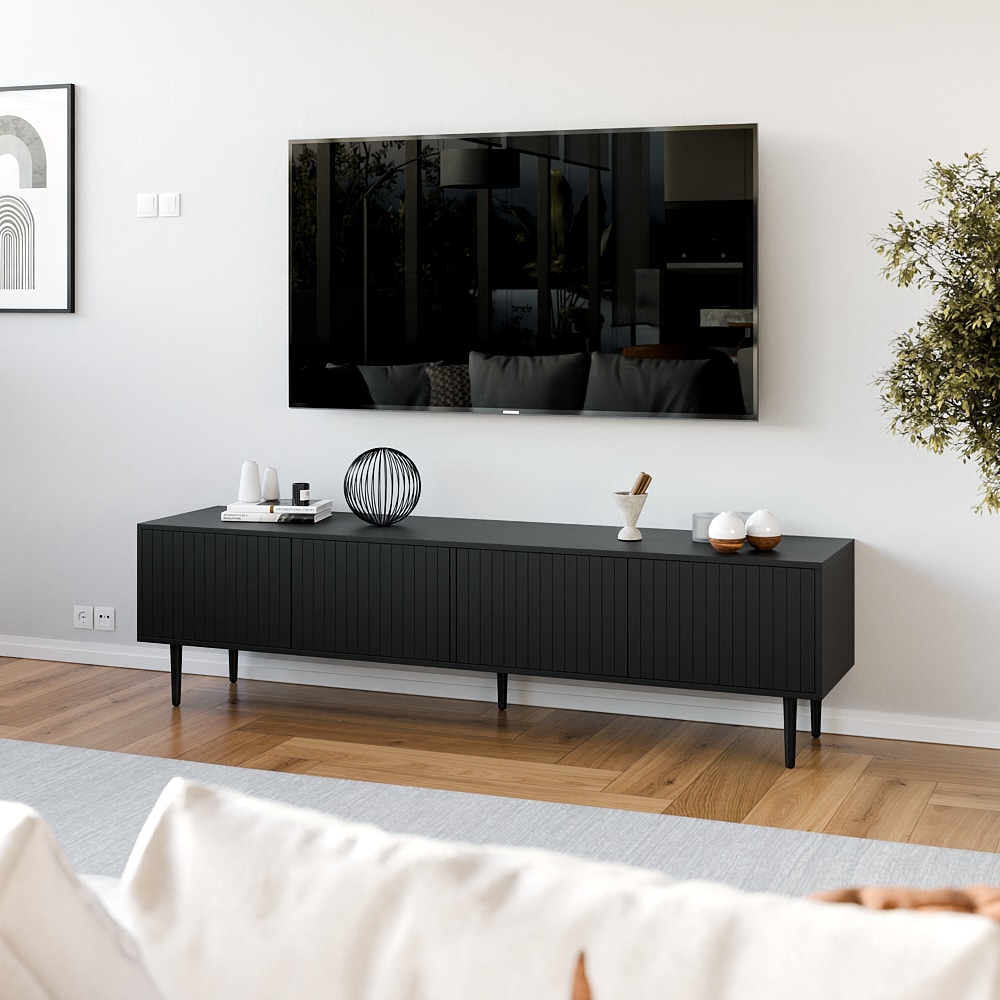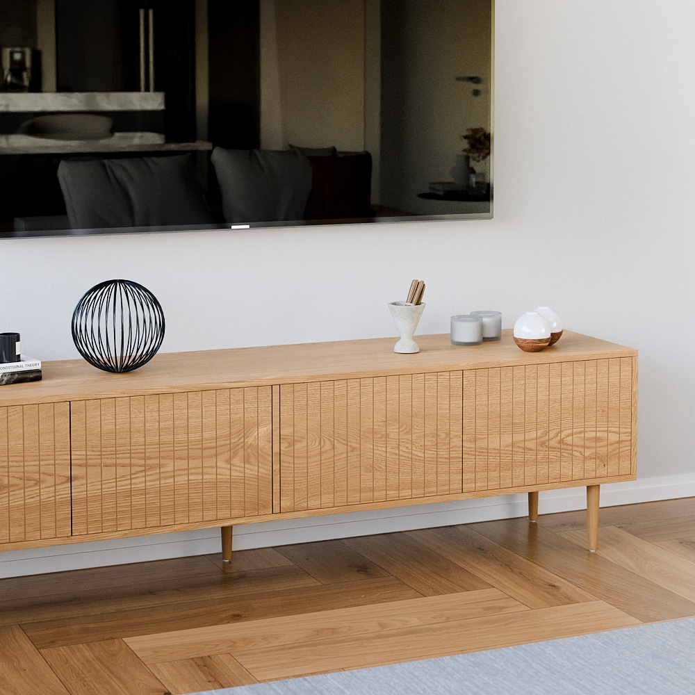 עיצוב מרהיב-קווים נקיים וגימורים מדוייקים ארבעה תאי אחסון גדולים הסגורים בדלתות למניעת כניסת אבק ולכלוך וחמש רגלי עץ חזקות ליציבות מרבית
