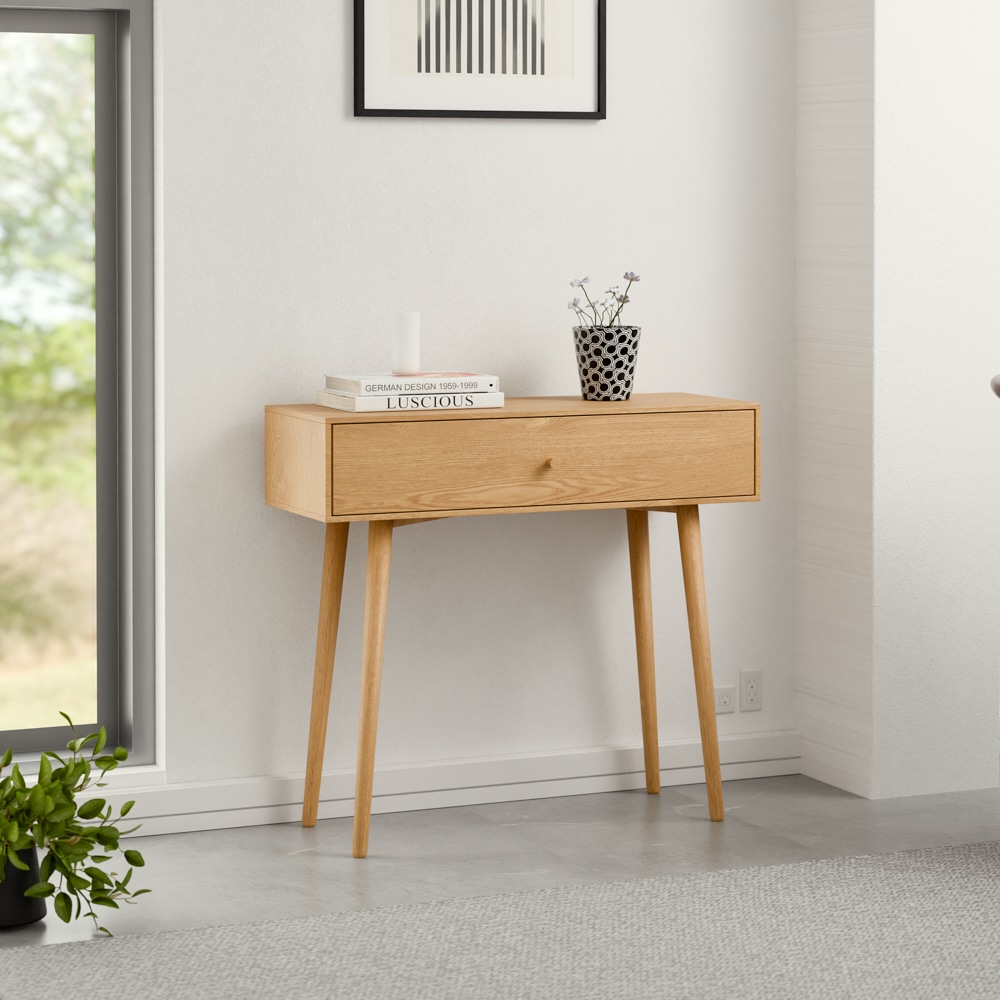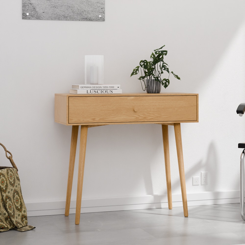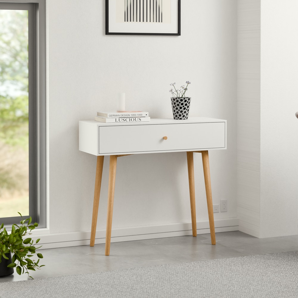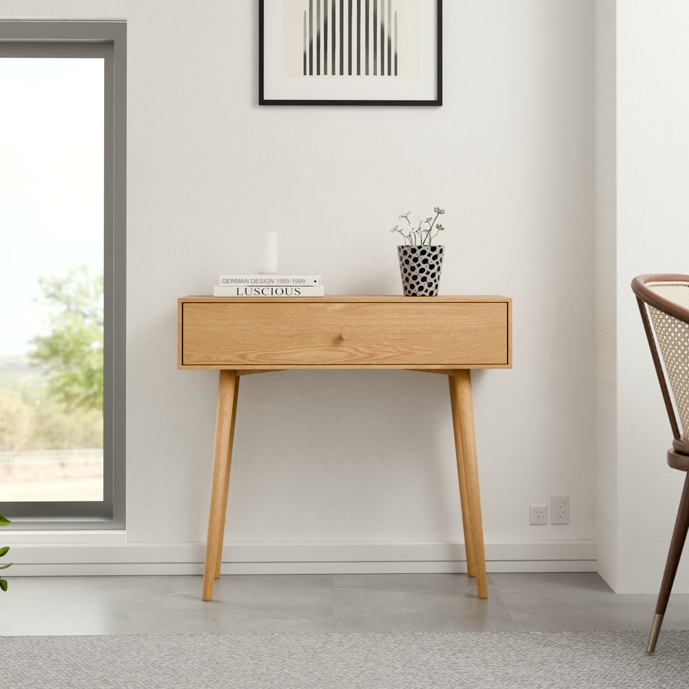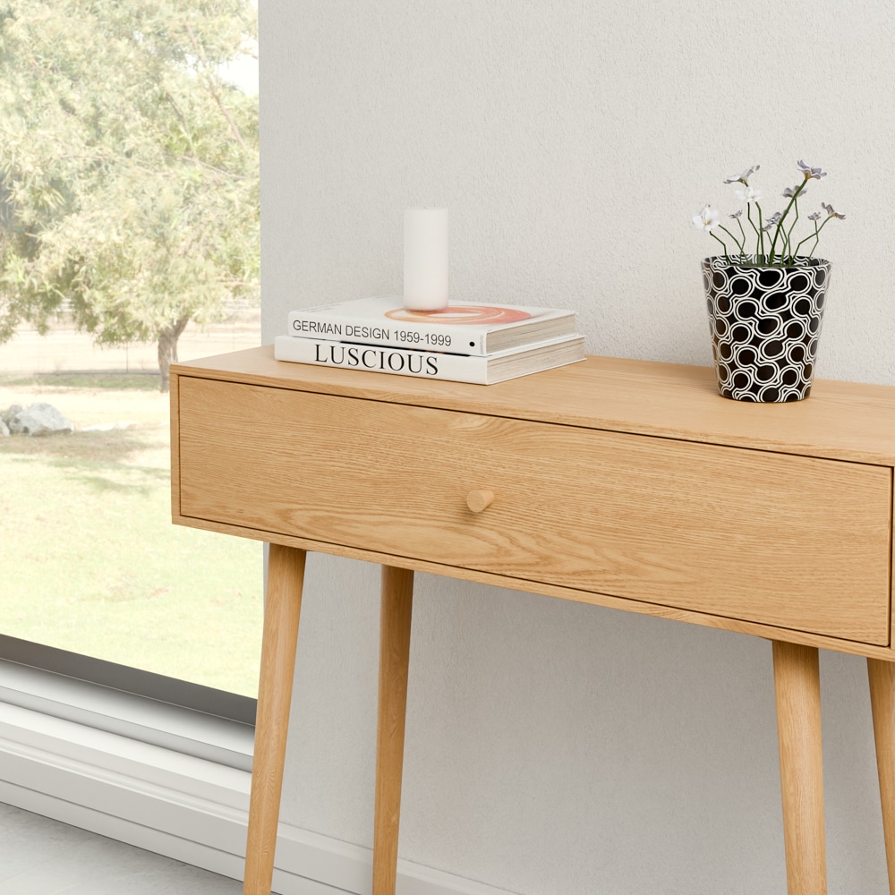 ארבע רגלי עץ חזקות ויציבות ומגירה לכל אורך הקונסולה