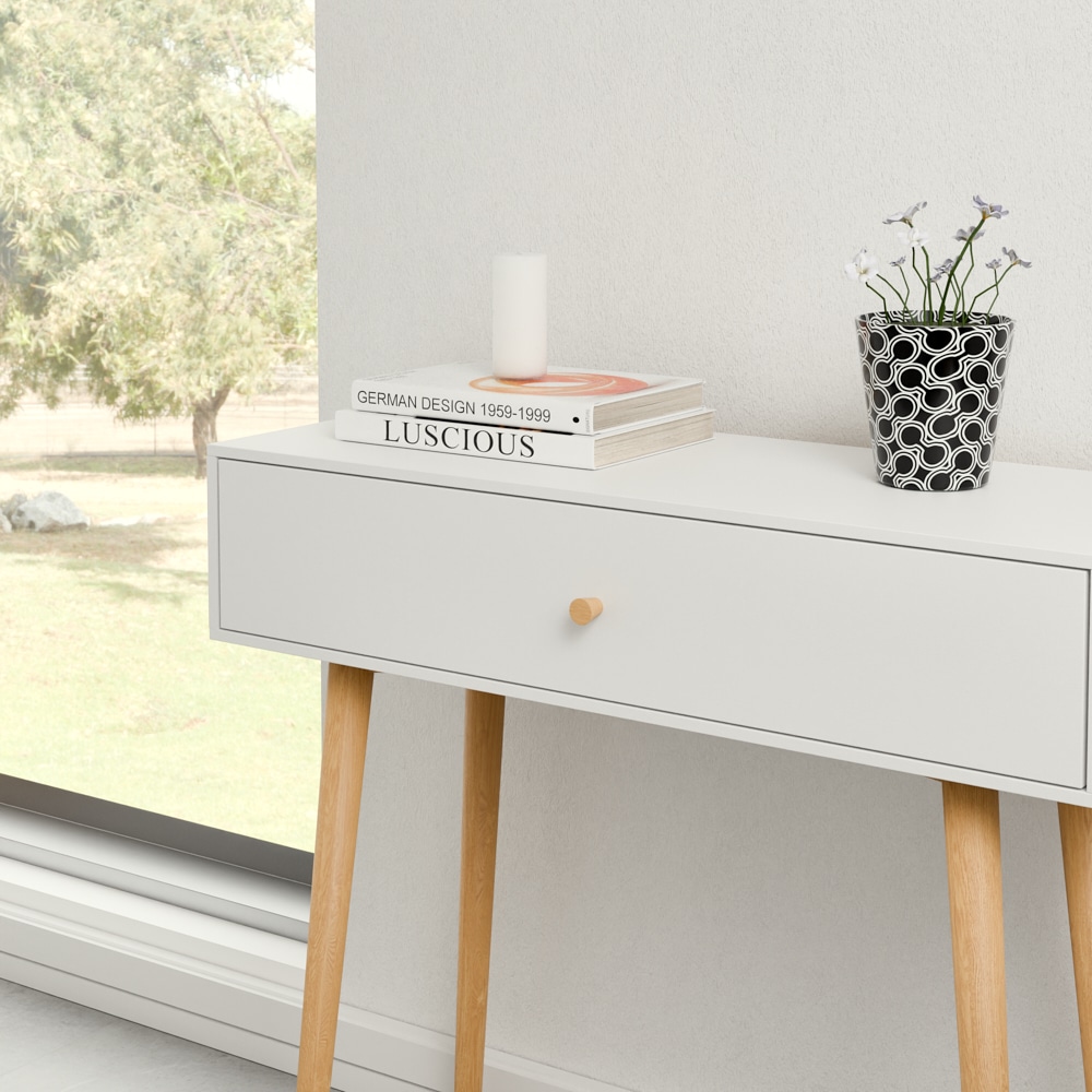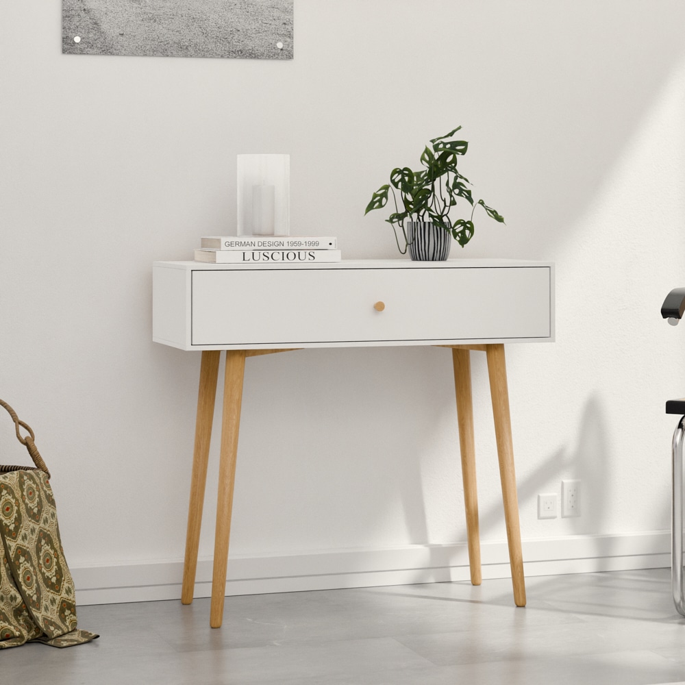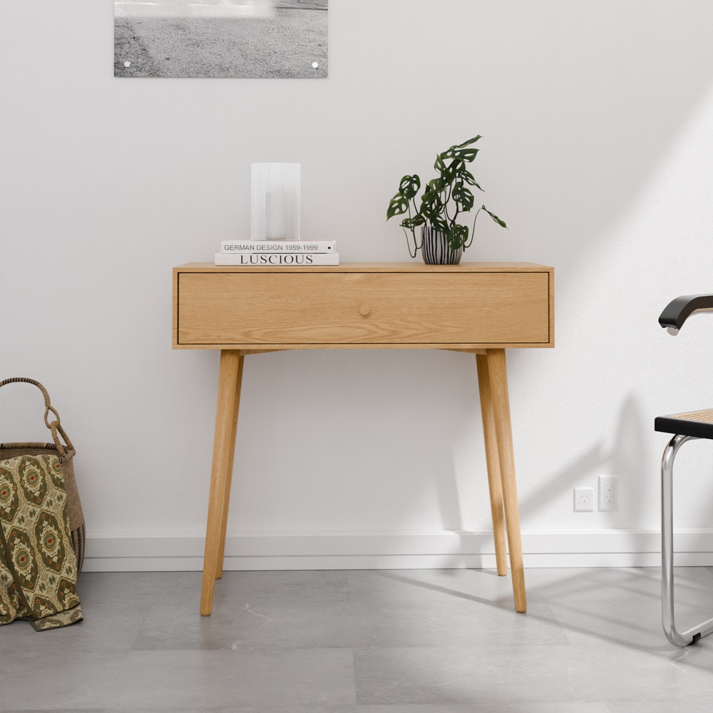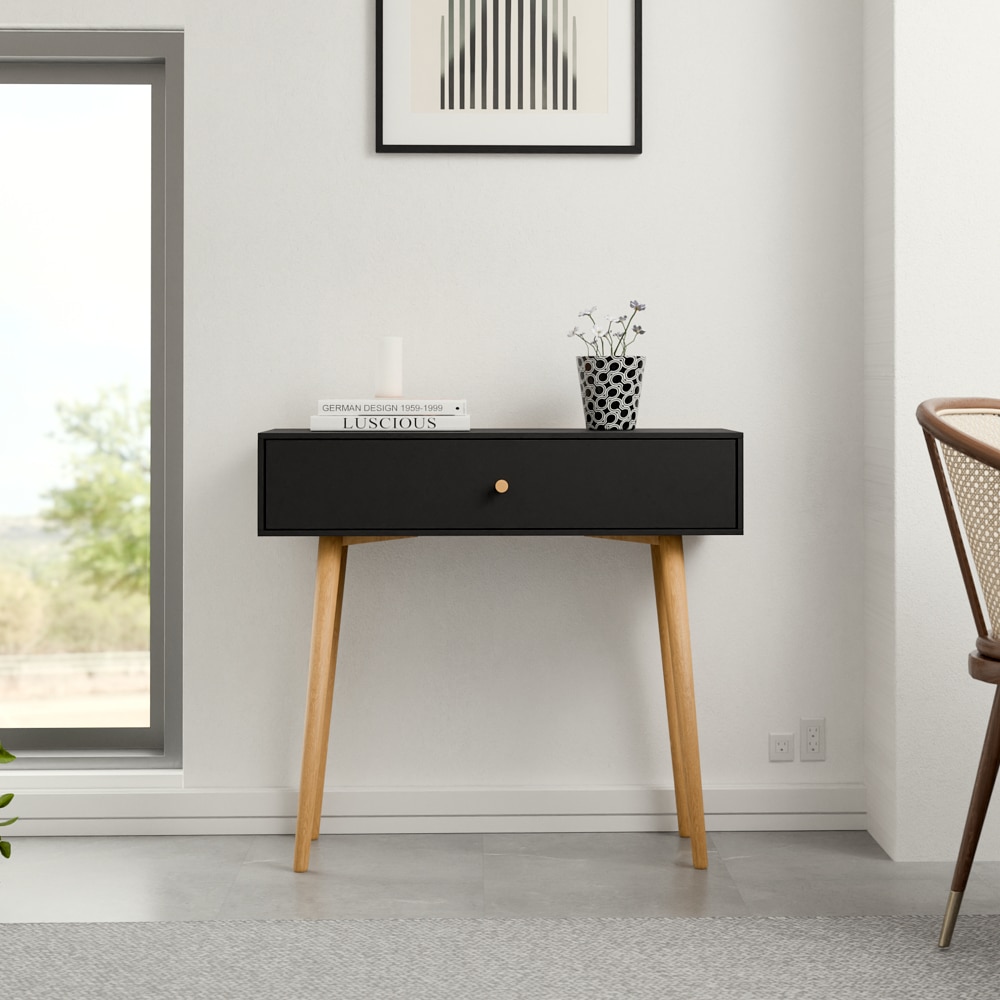 ארבע רגלי עץ חזקות ויציבות ומגירה לכל אורך הקונסולה