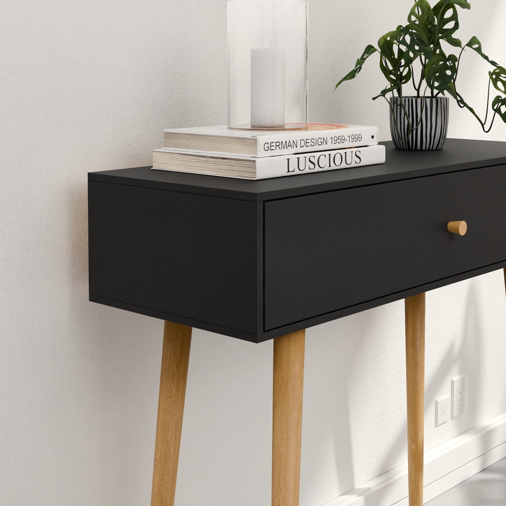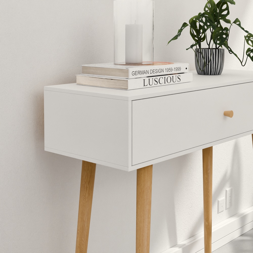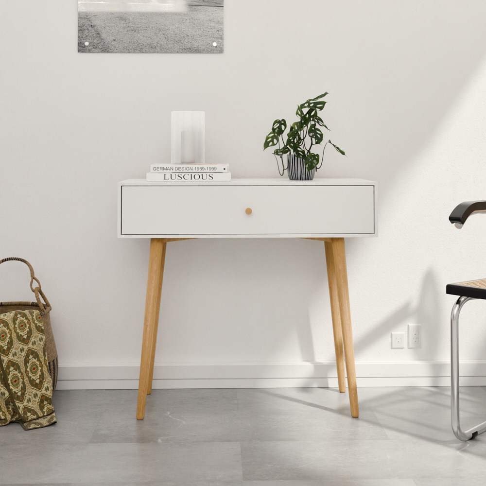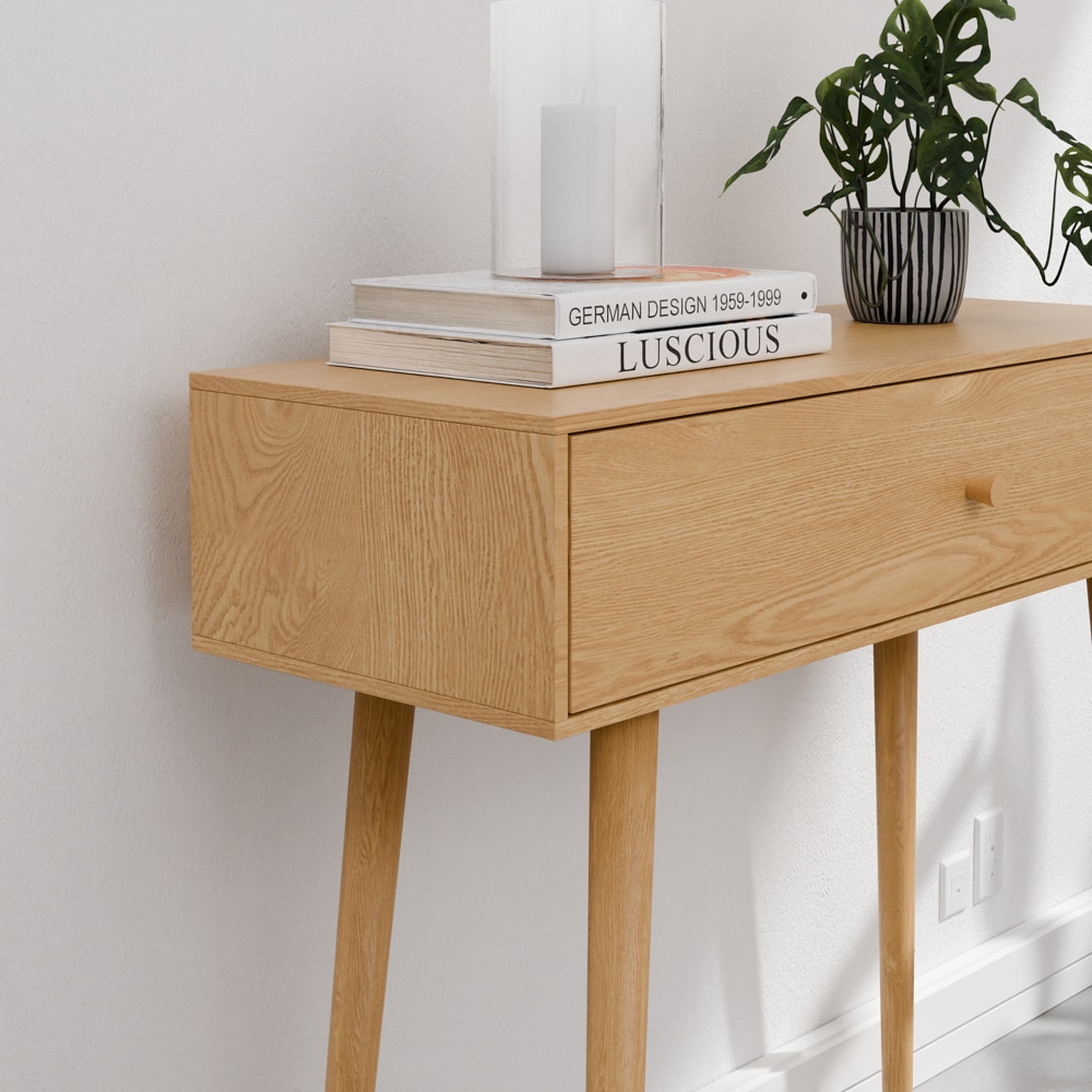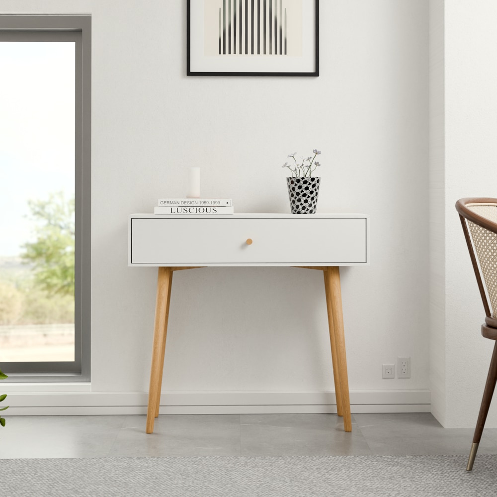 ארבע רגלי עץ חזקות ויציבות ומגירה לכל אורך הקונסולה