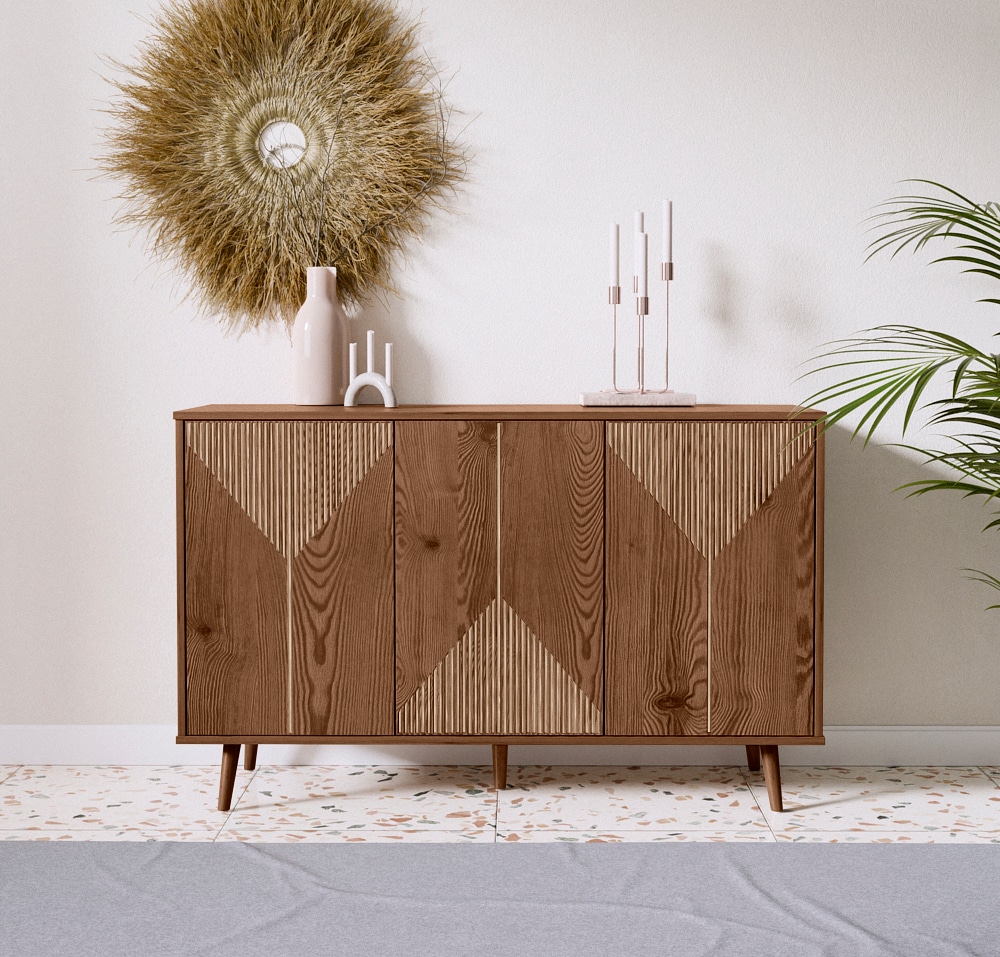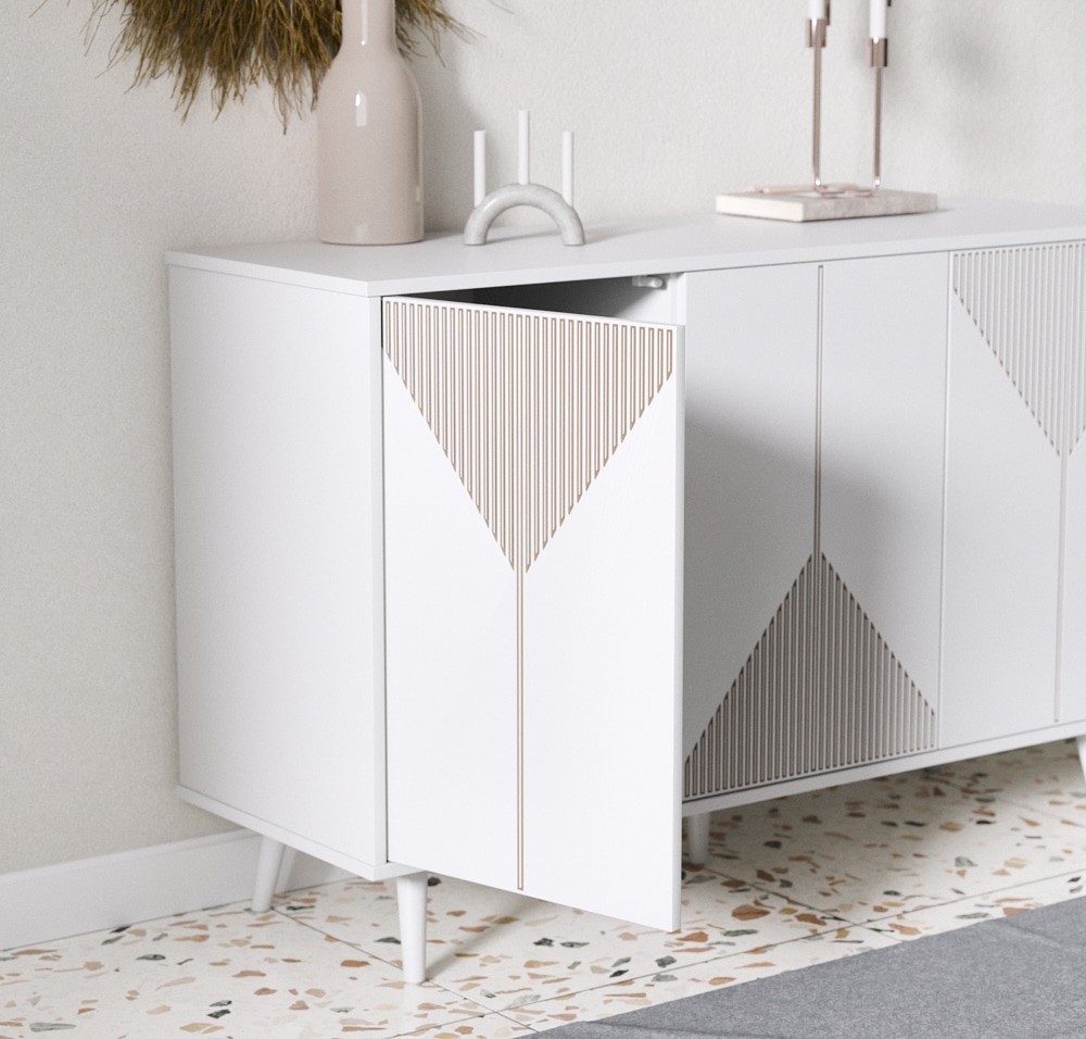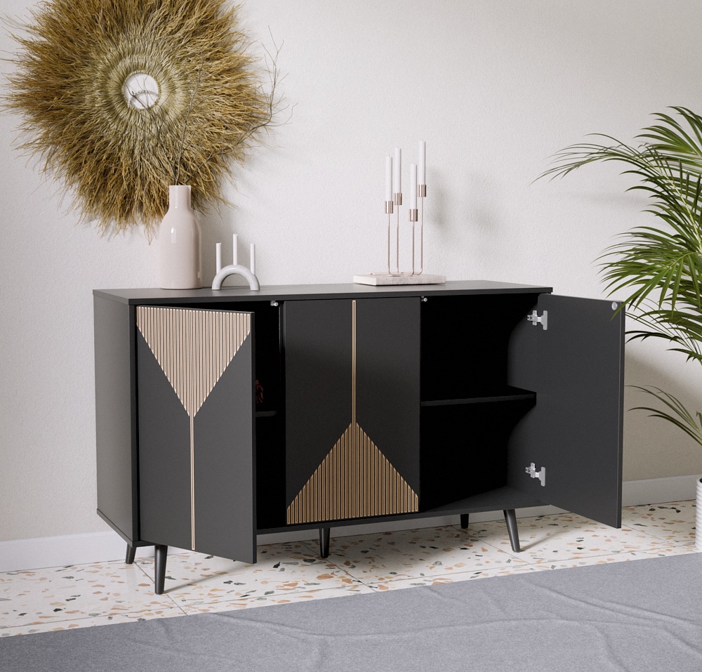 הקונסולה מכילה שישה תאי אחסון גדולים ושלוש דלתות מעוצבות