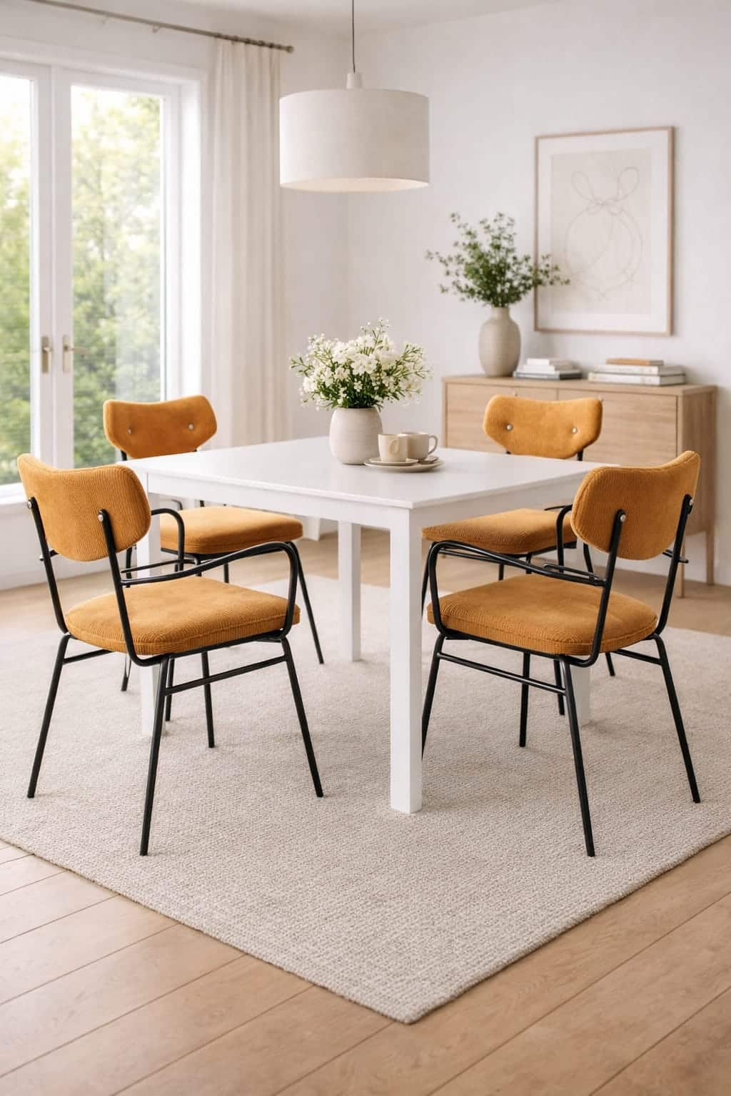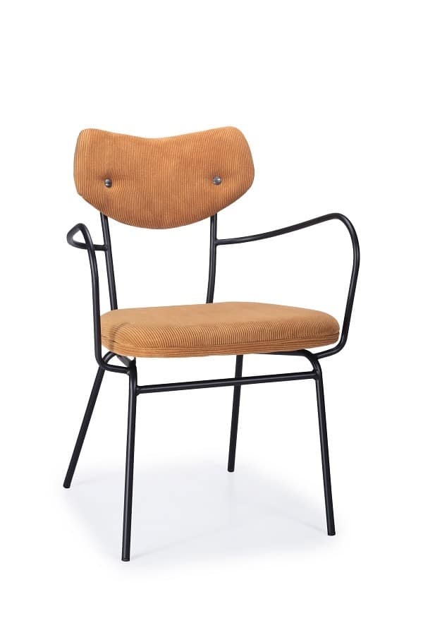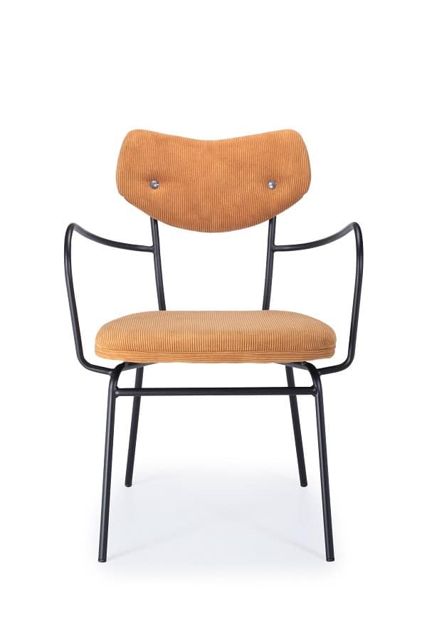 כיסא קורדרוי חרדל רגליים שחורות