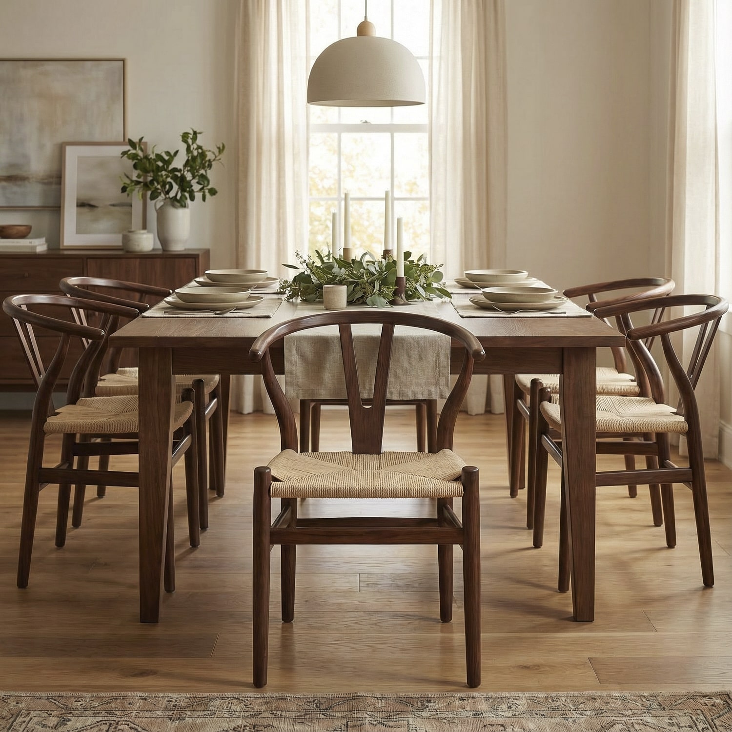 כיסאות בעיצוב על זמני שמשלב עץ בגוונים חמים גב מעוגל ויחודי ומושב נוח לנוחות יומיומית