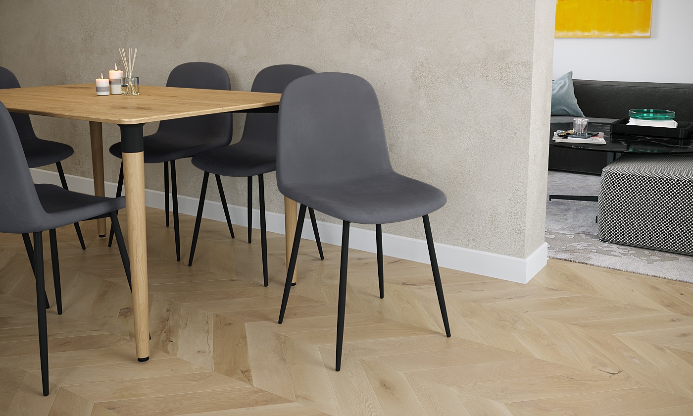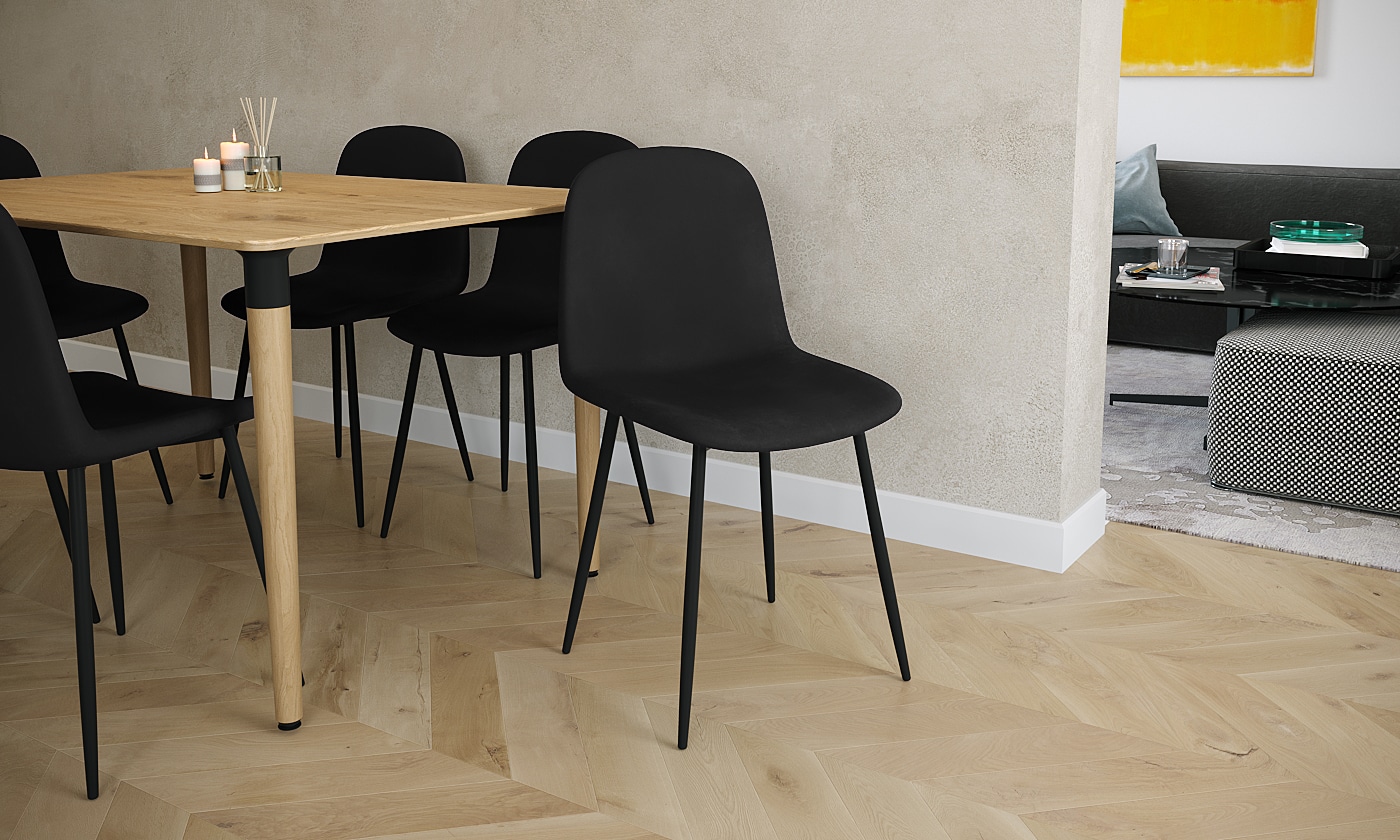 רביעיית כיסאות פינת אוכל במראה מודרני מעוצבים מרופדים לישיבה נוחה במראה יוקרתי