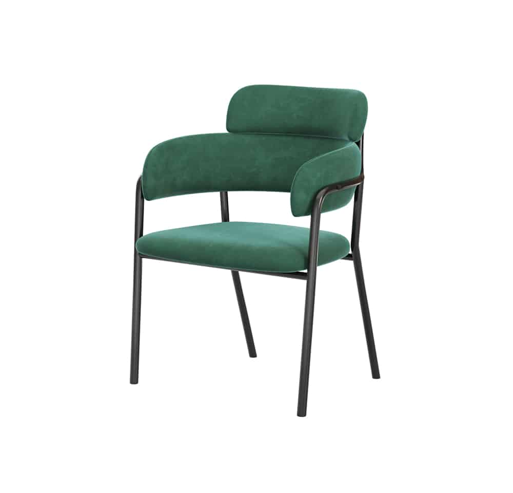 הכיסא עשוי מקטיפה בריפוד ספוג איכותי ורגלי מתכת חזקות