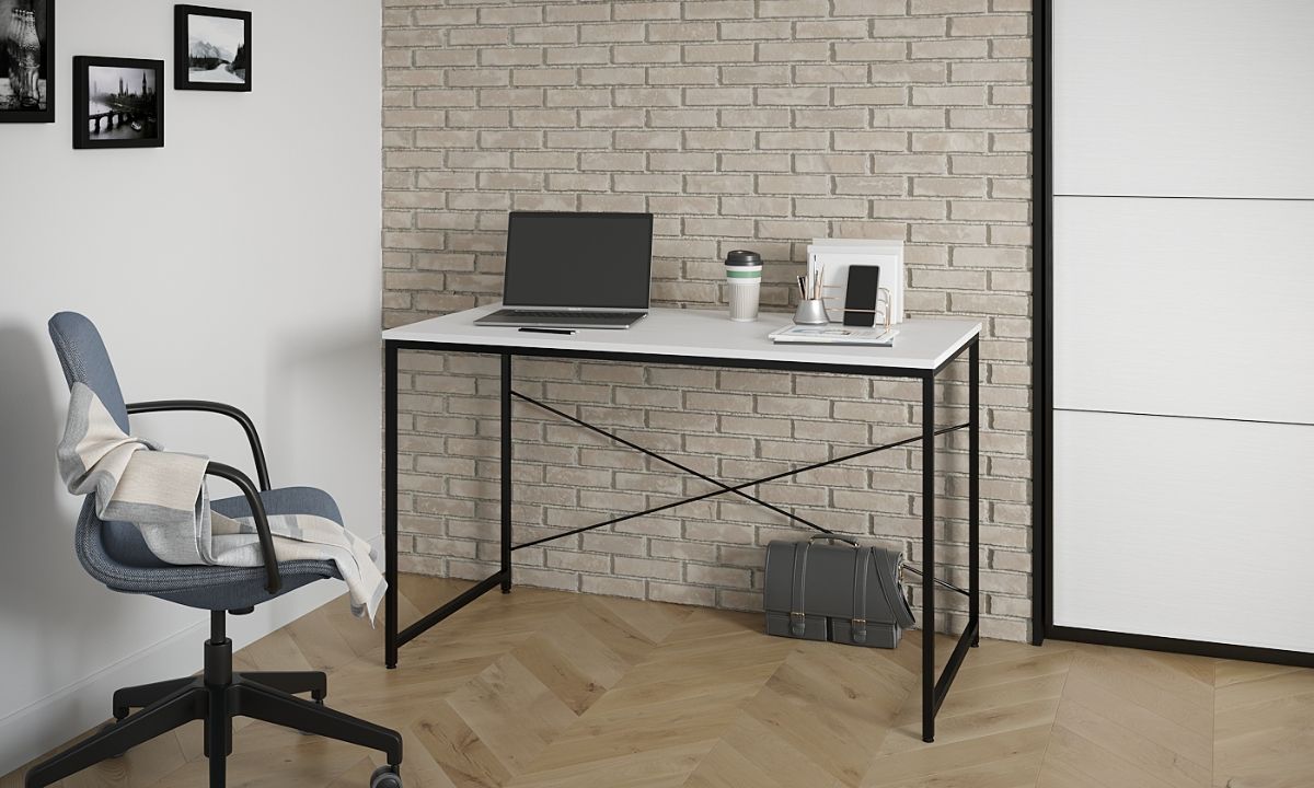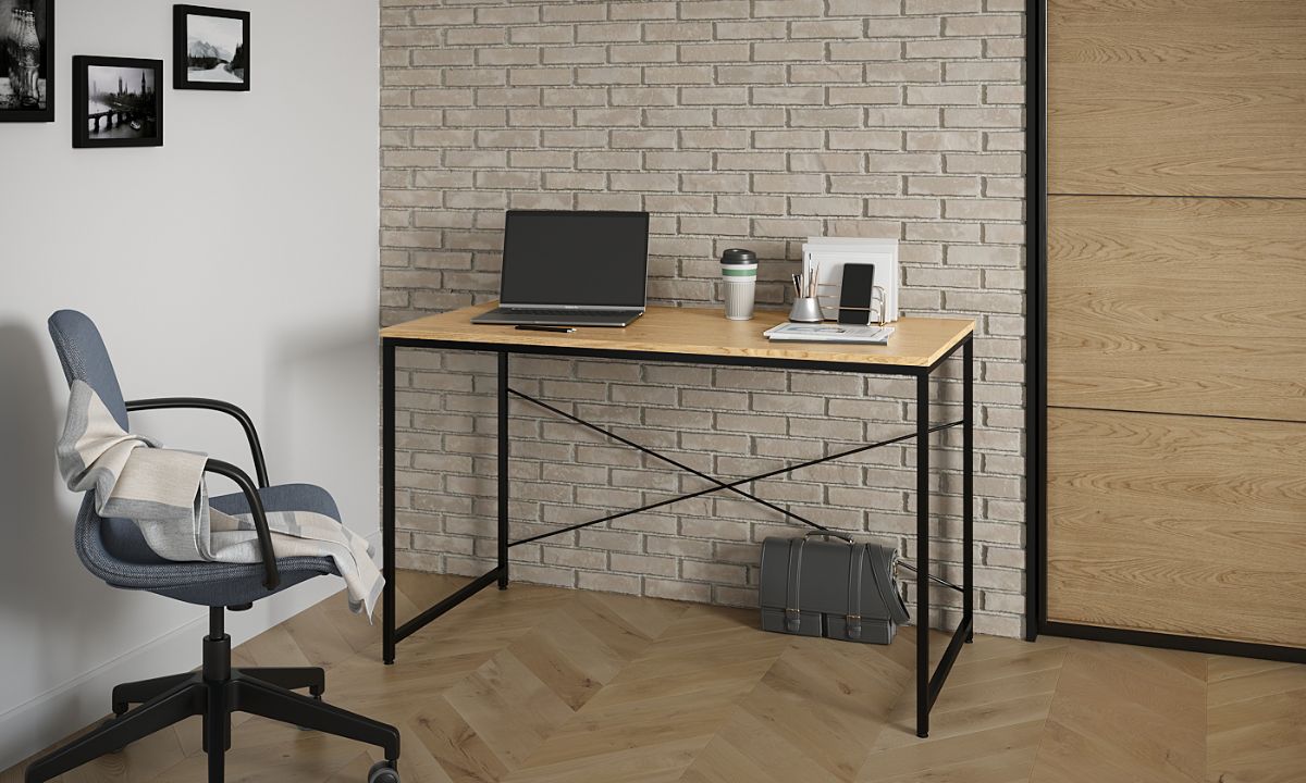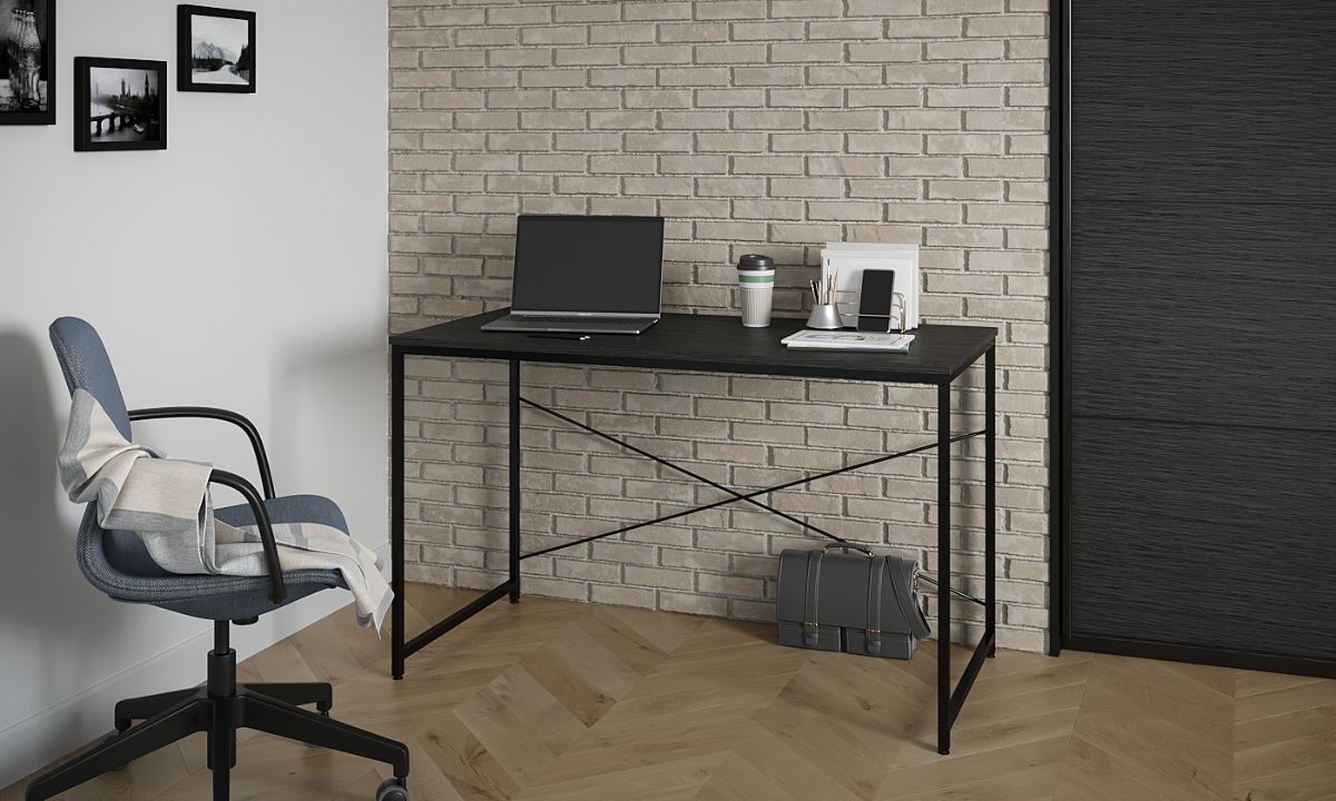 שולחן עבודה דגם קריק המשלב מתכת מושחרת ופלטת עץ רחבה במגוון צבעים לבחירה