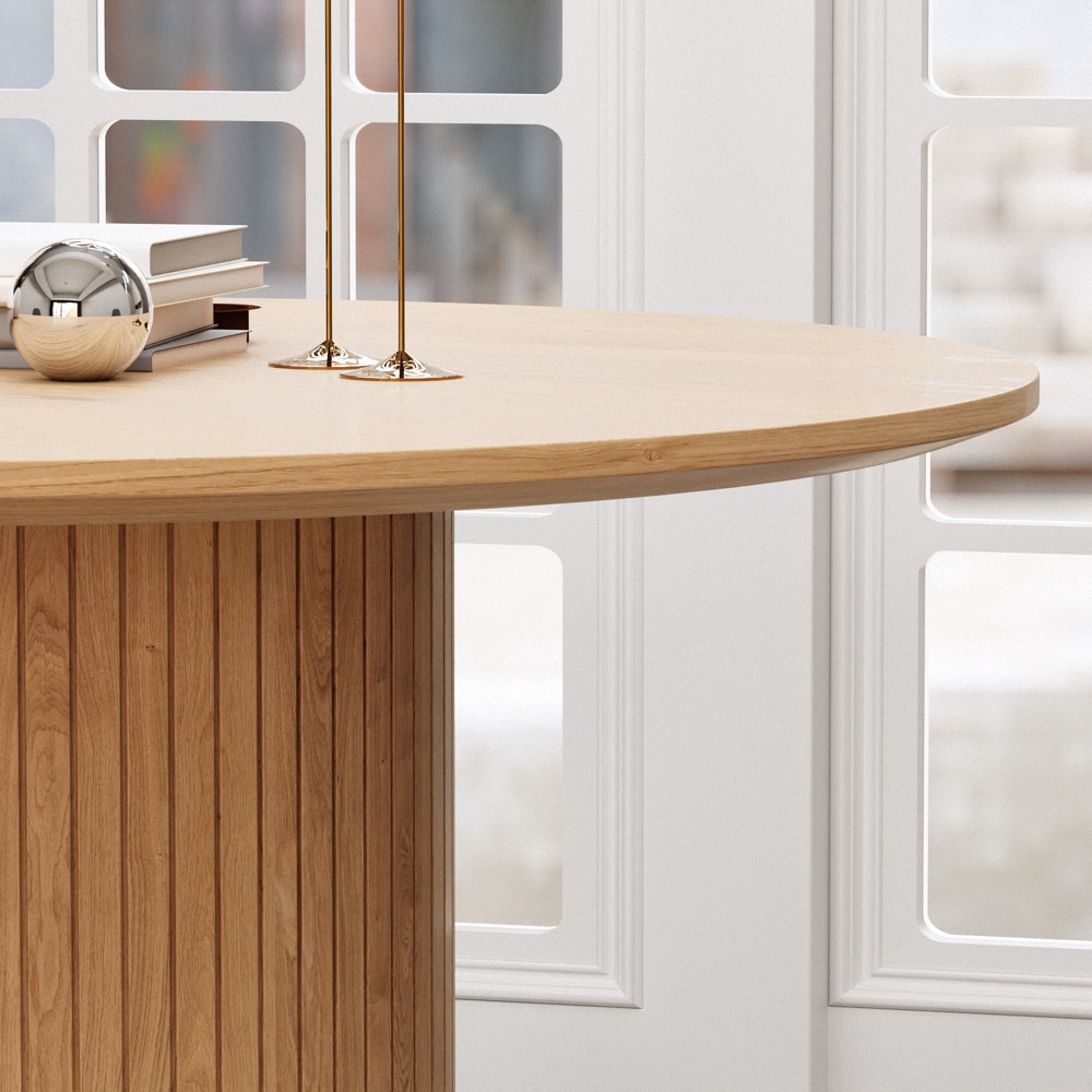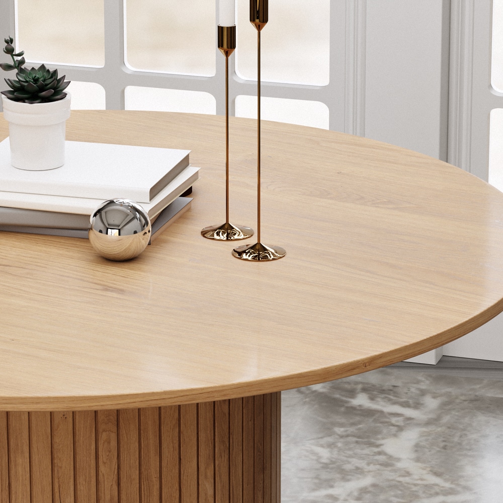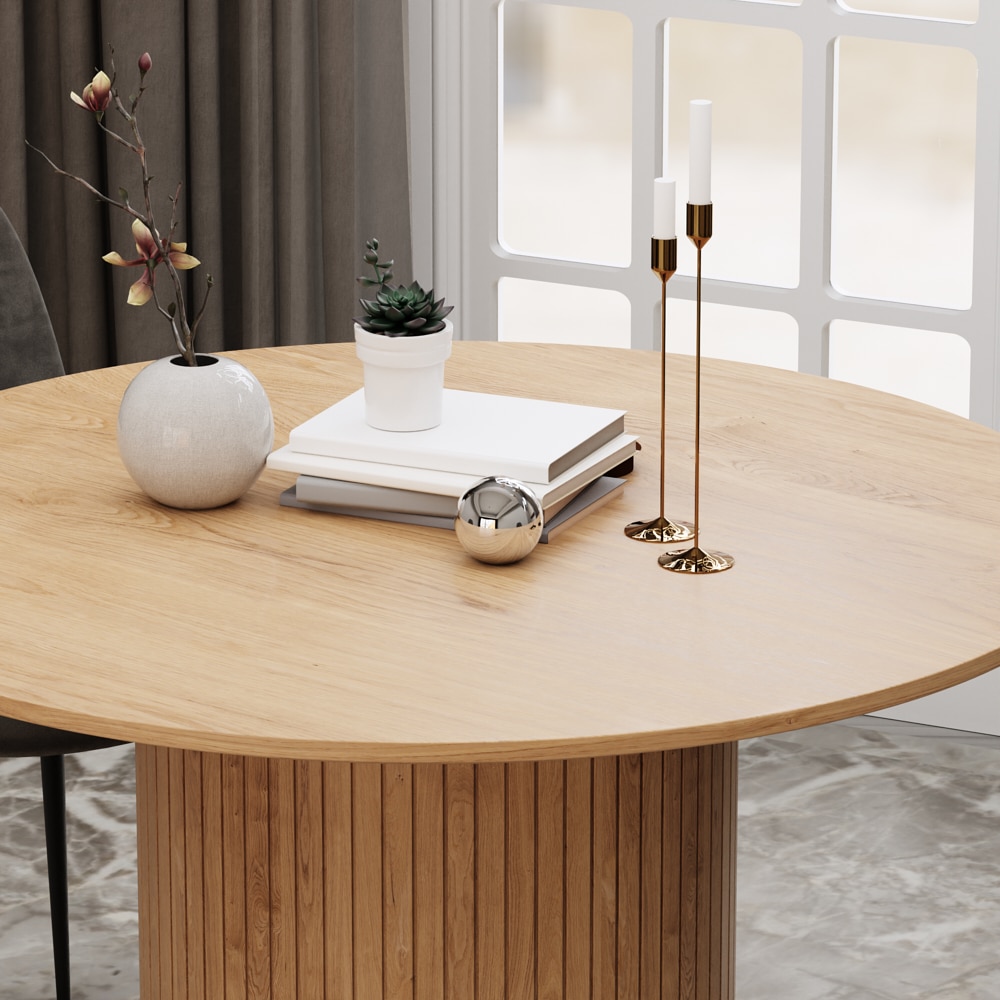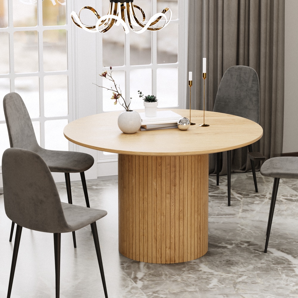 שולחן פינת אוכל מעוצב בעל רגל עגולה רחבה ליציבות מושלמת