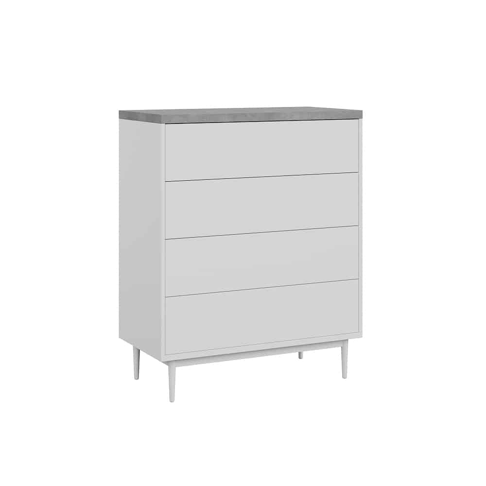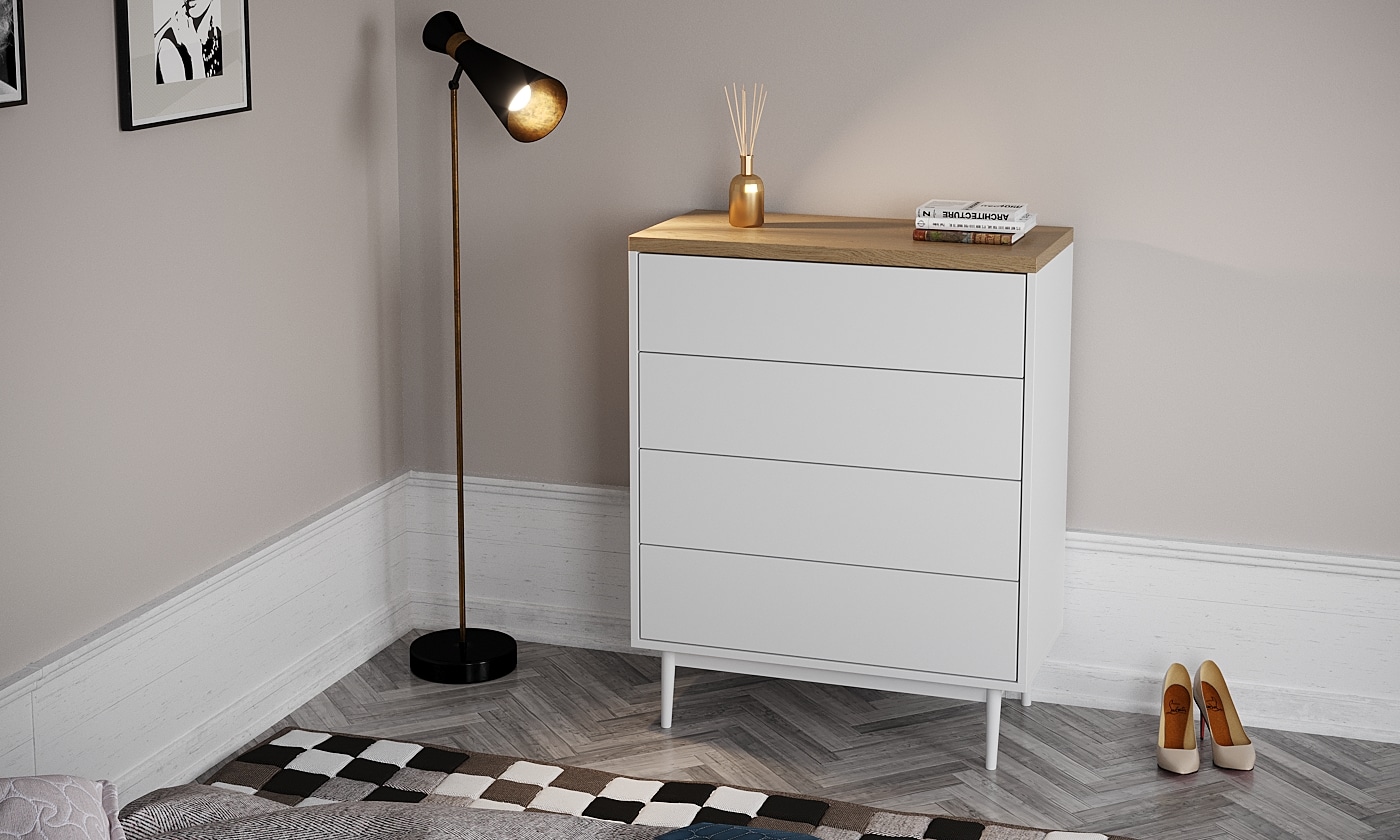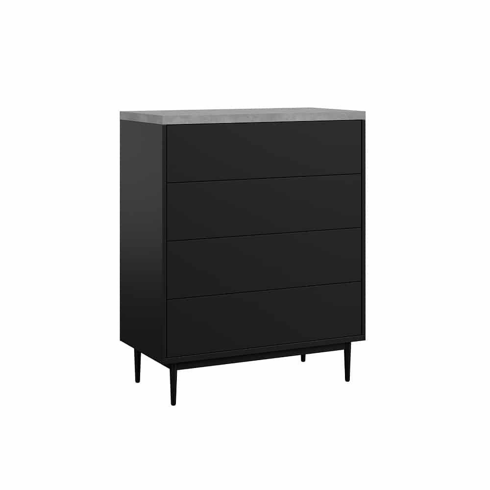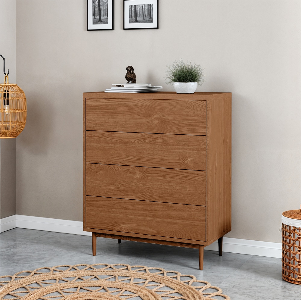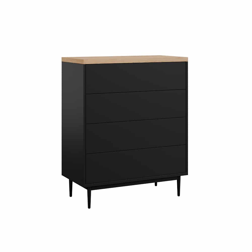 ארבע מגירות הנעות על מסילות נוחות ושקטות לפתיחה וסגירה נוחות העומדות על ארבע רגלי עץ חזקות ליציבות מירבית