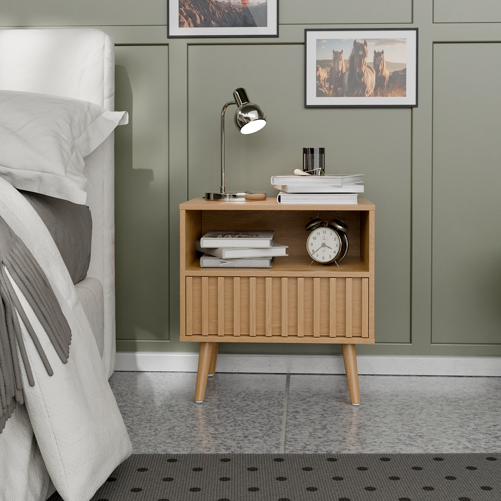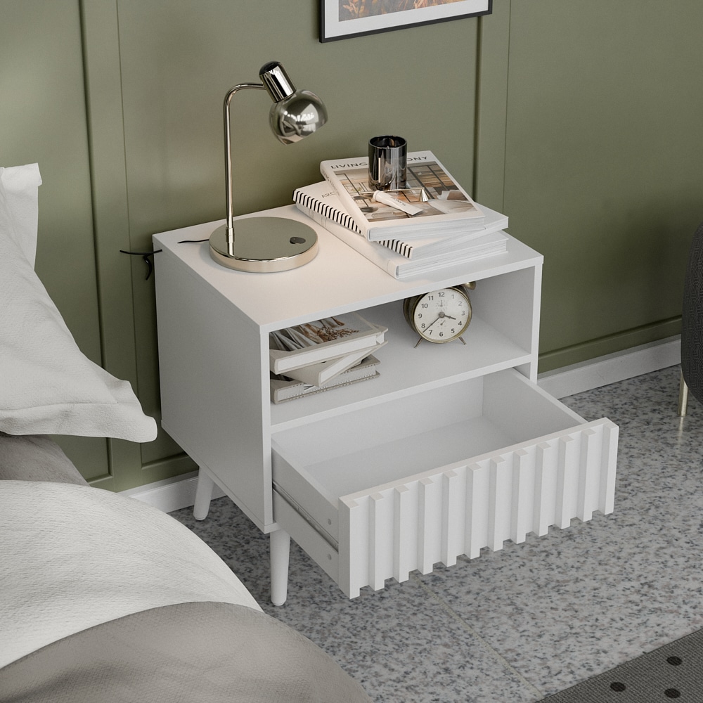 שידת לילה מודרנית בעלת מגירה מעוצבת ותא אחסנה גדול במגוון צבעים לבחירה