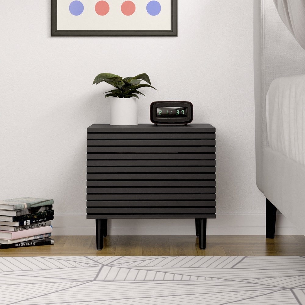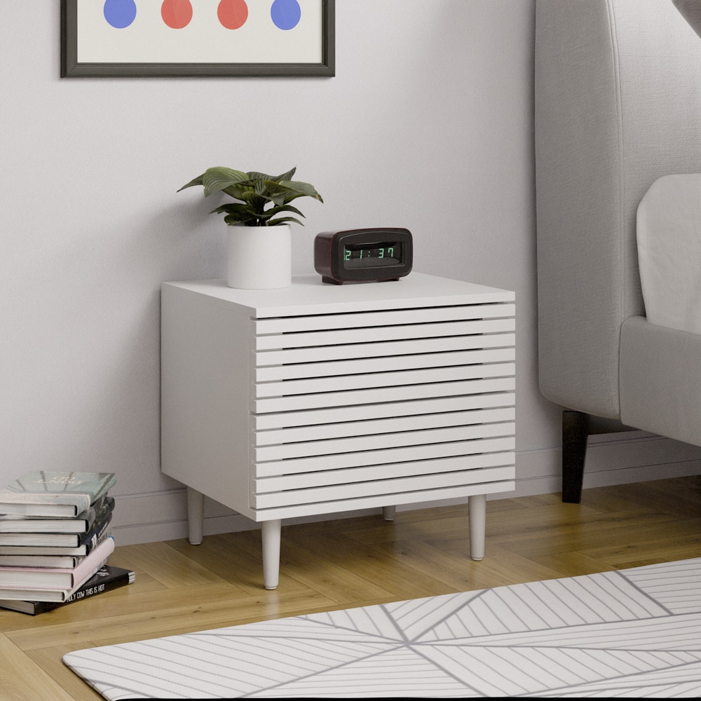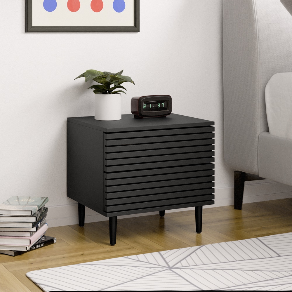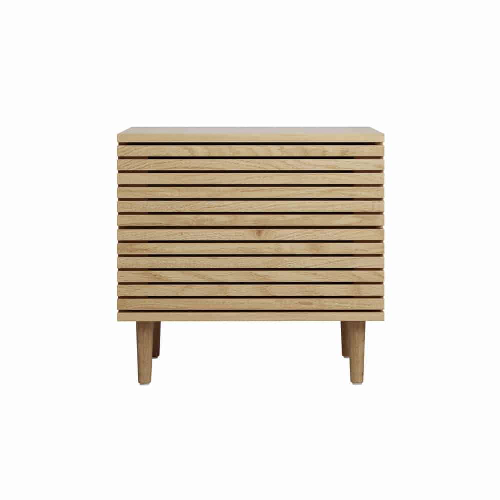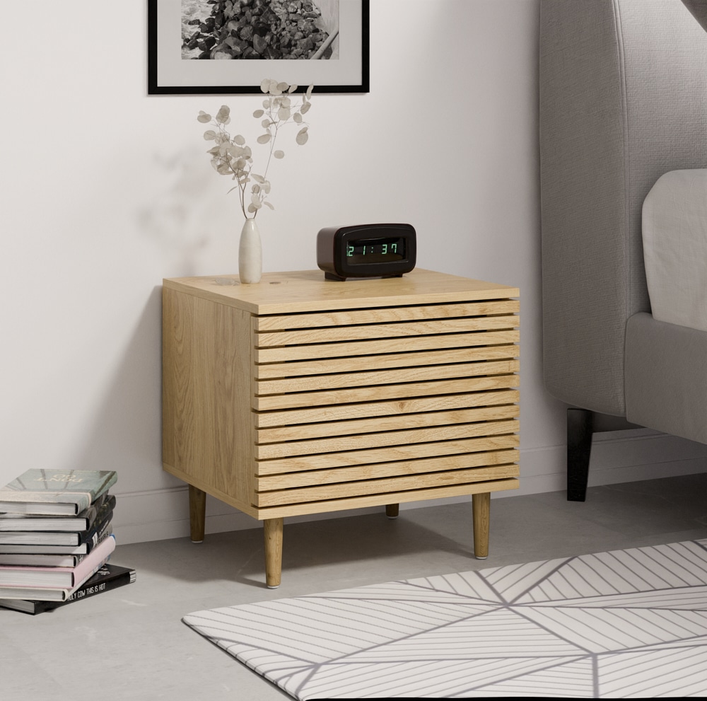 שידת לילה בעלת שתי מגירות ומנגנון פוש נסתר במראה מודרני ומושך
